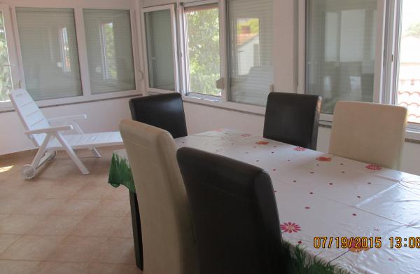 Kompletno opremljen apartman u mirnom predjelu Biograda, blizina plaže Bošana i centra grada. Idealan za dugotrajan boravak. Apartman se nalazi na 2. katu. Sastoji se od 2 spavaće sobe, kuhinje, blagovaone, dnevnog boravka, kupaonice, balkona i zatvorene terase. Uz perilicu rublja na raspolaganju vam je i perilica posuđa. Zbog neposredne blizine plaže i visine na kojoj se nalazi apartman je jako prozračan, a na svim prozorima postavljene su mrežice za zaštitu od muha i komaraca.