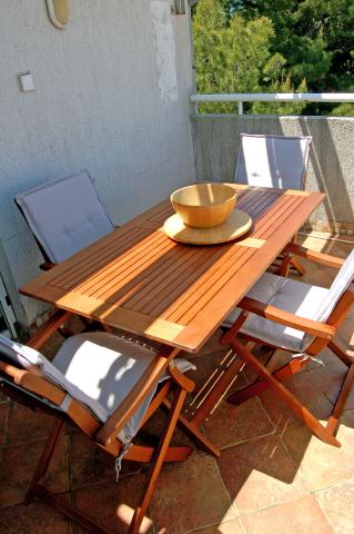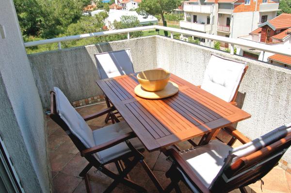 Lijepo uredjen i izuzetno cist apartman u Biogradu na moru, idealan za obitelj bez ili sa maksimalno dvoje djece. Apartman se sastoji od spavace sobe sa bracnim krevetom, dnevne sobe sa krevetom na razvlacenje, kuhinjom, kupaonom i vecim balkonom na kojemu se moze iznjeti stol za jelo. Apartman je opremljen klima uredjajem, kompletnom kuhinjom, HD tv prijemnikom i flat high speed internetom (trebao bi biti u uporabi od 10. 7. ). Apartman je smjesten u novoj zgradi u blizini plaze (3 min hoda), sportskih terena (5 min hoda)i glavne rive i centra mjesta (5 min hoda uz more i borovu sumu). U blizini je i ljetno kino. Ipred kuce je parkirno mjesto.