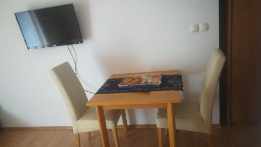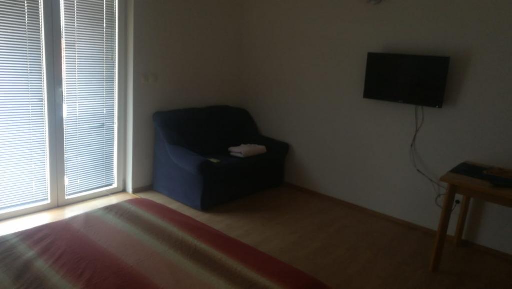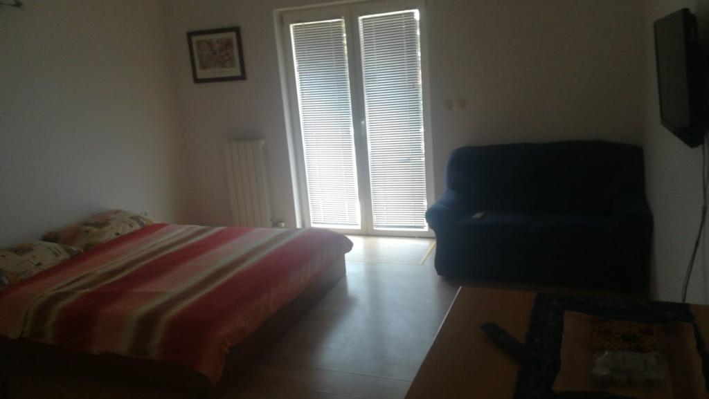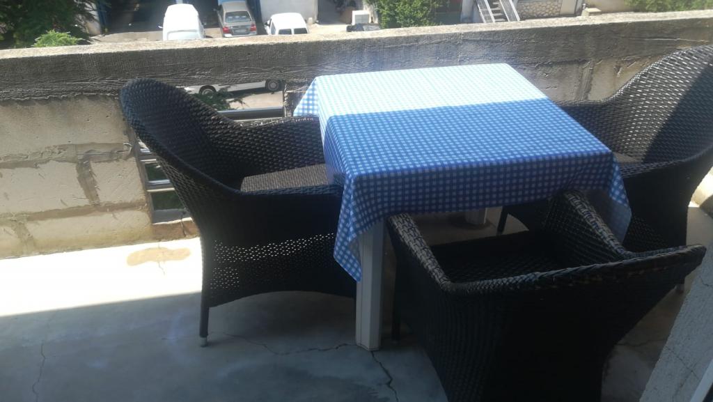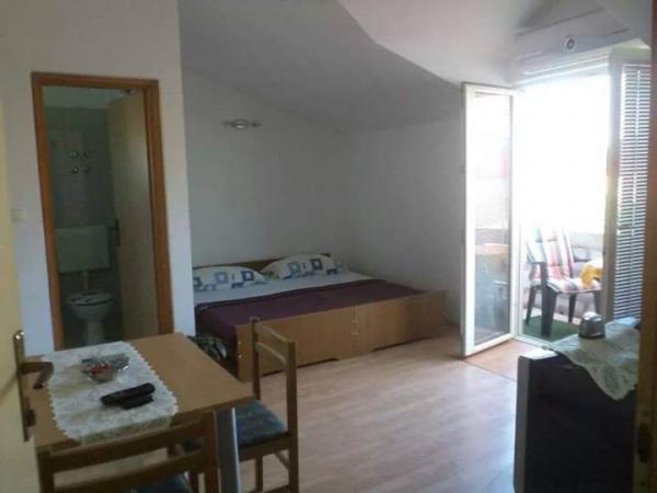Apartman se sastoji od dvije prostorije jedna nasuprot druge. U prvoj prostoriji nalazi se bračni krevet mini kuhinja kupaona terasa klima tv. U drugoj prostoriji nalazi se krevet za dvije osobe plus pomoćni ležaj kupaona mala terasa klima mali hladnjak, pogodno za obitelji sa dvoje ili troje djece roditelji mogu boraviti u većem dijelu dok je drugi dio nasuprot pogodan za djecu. Moguće su razne kombinacije najma kao studio apartman ili kao soba sa kupaonom i terasom dakle obadvije prostorije su klimatizirane svaka prostorija ima svoje kupaone, terase, tv, internet