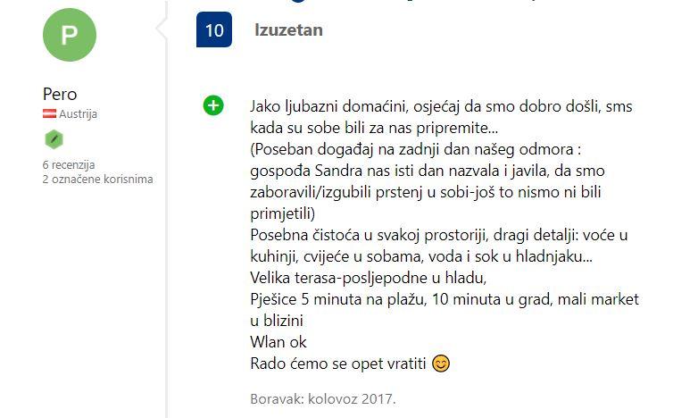 Pročitaj više Smještajne jedinicePlaćanje i napomene: Boravišna taksa je uključena u cijenu smještaja! Da bi Vaša rezervacija bila osigurana potrebno je uplatiti 30 % od pune cijene unaprijed kao depozit izravno vlasniku smještaja, a preostalih 70 % po dolasku u smještajnu jedinicu. Posljednjeg dana boravka, gost je dužan napustiti smještaj do 09:00 sati, kako bi od 14:00 sati bio osiguran prihvat sljedećeg gosta.