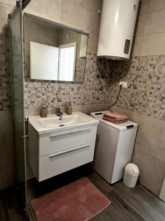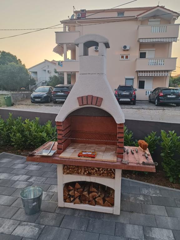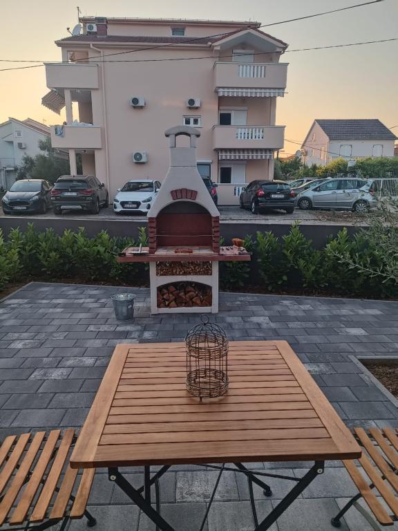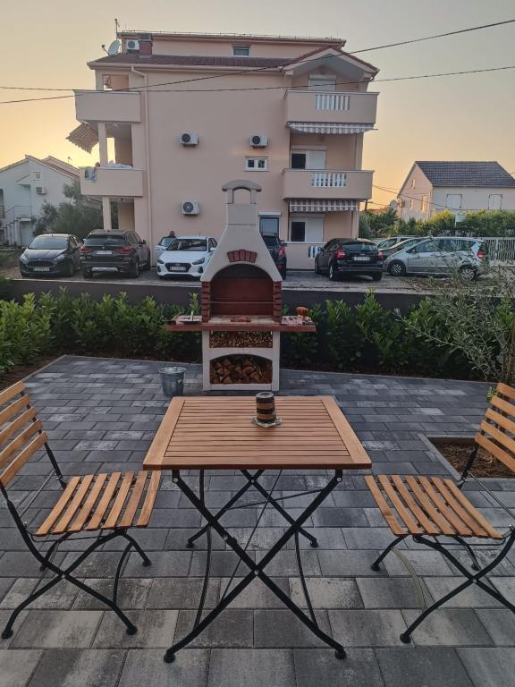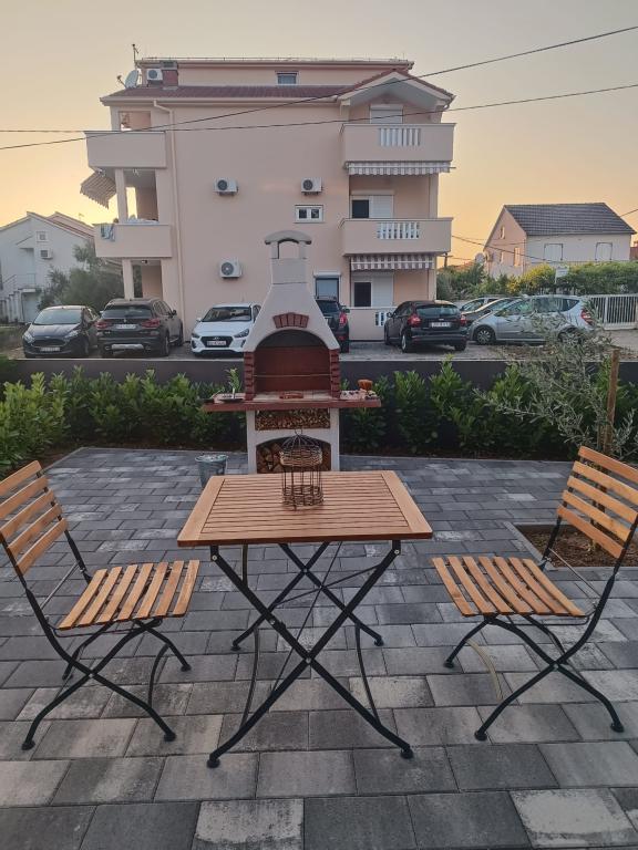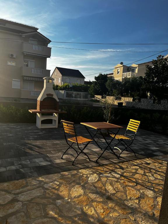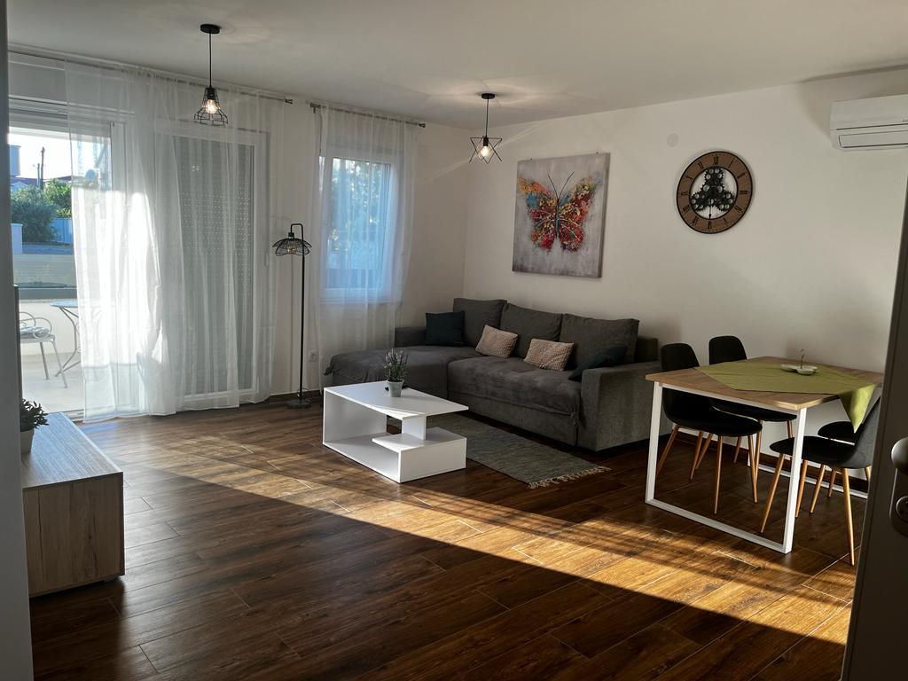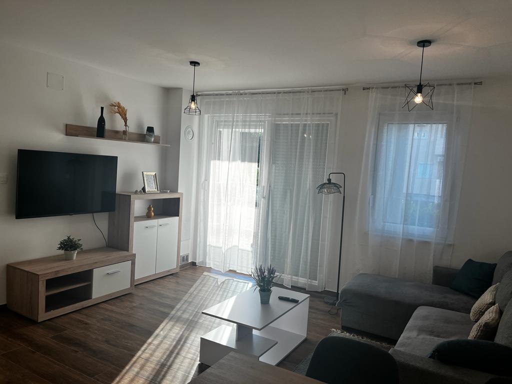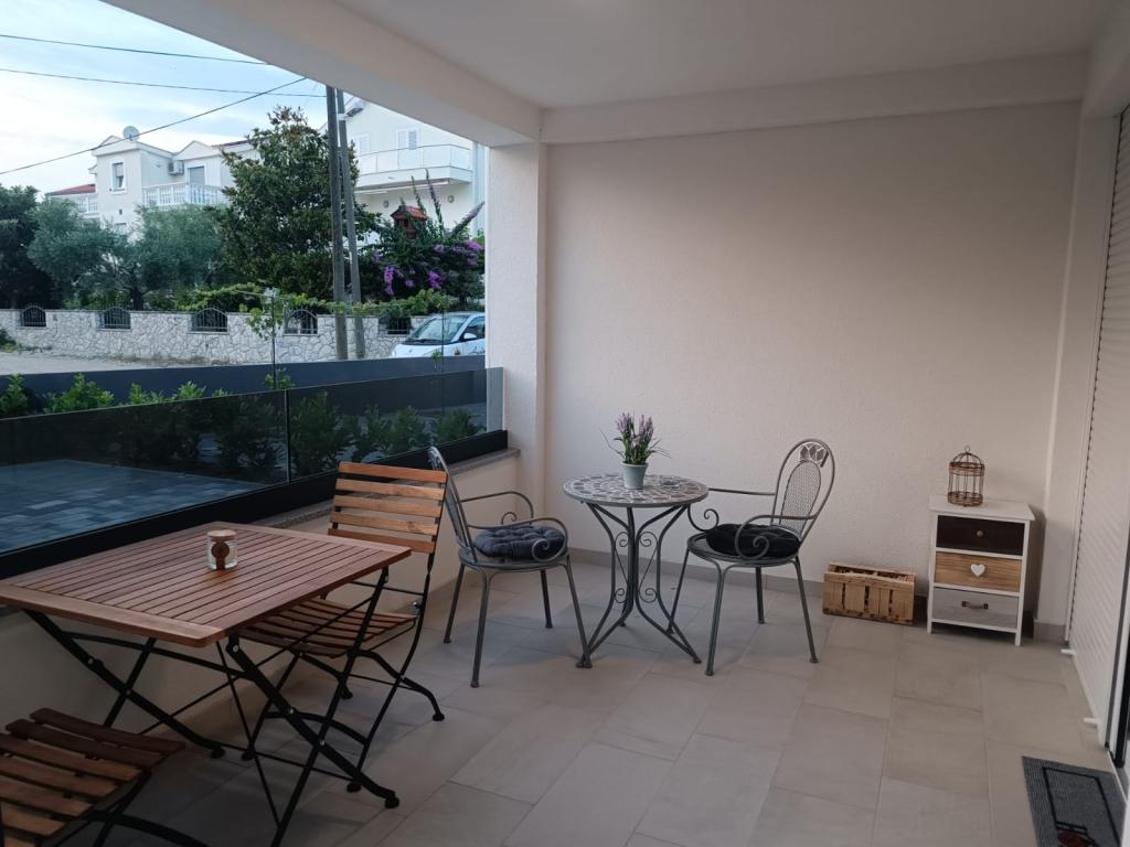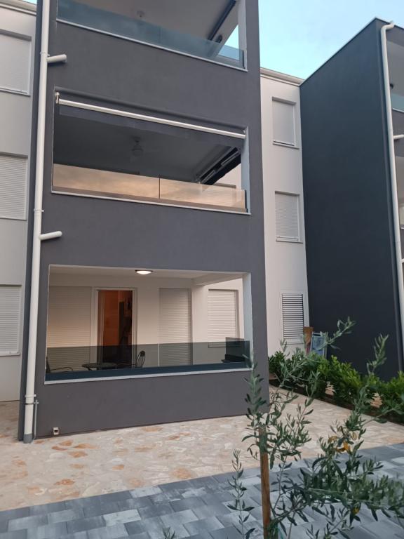 Novouređeni jednosobni apartman u prizemlju zgrade sa natkrivenim balkonom i dvorištem sa roštiljem. Parkirno mjesto je ispred zgrade. Apartman je suvremeno opremljen. Nalazi se u mirnom predjelu. 6-7 minuta hoda do centra isto toliko minuta hoda do plaže.