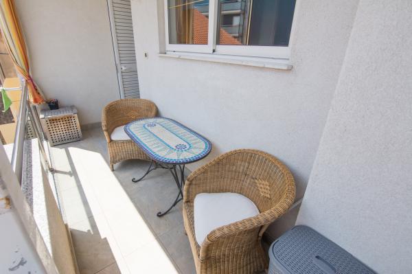 Ovaj luksuzno opremljen apartman nalazi se u manjoj stambenoj zgradi na rivi, u samom centru Biograda na moru, u neposrednoj blizini hotela Kornat i Ilirija, s pogledom na more. Apartman raspolaže s dvije spavaće sobe s bračnim krevetima i dodatnim ležajem za jednu osobu u dnevnom boravku, tako da može ugostiti do 5 osoba. Posteljina, kuhinjske krpe i ručnici Vas očekuju u apartmanu, a ručnike za plažu molimo da donesete sa sobom. Apartman je klimatiziran, opremljen SAT TV-om i besplatnim Wi-Fi (WLan) internetom, perilicom za posuđe i perilicom za rublje. Kuhinja je opremljena posuđem i priborom za pripremu i serviranje jela. U kupaonici se nalazi sjedeća kada, toalet i umivaonik. Na raspolaganju Vam je jedno parkirno mjesto na polu zatvorenom parkiralištu, bez dodatnih troškova.
