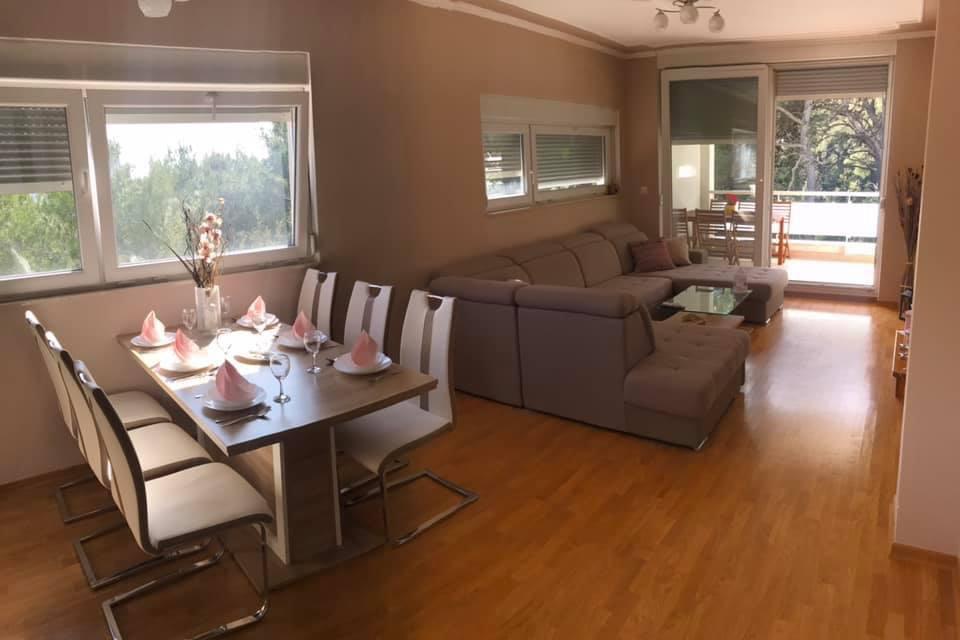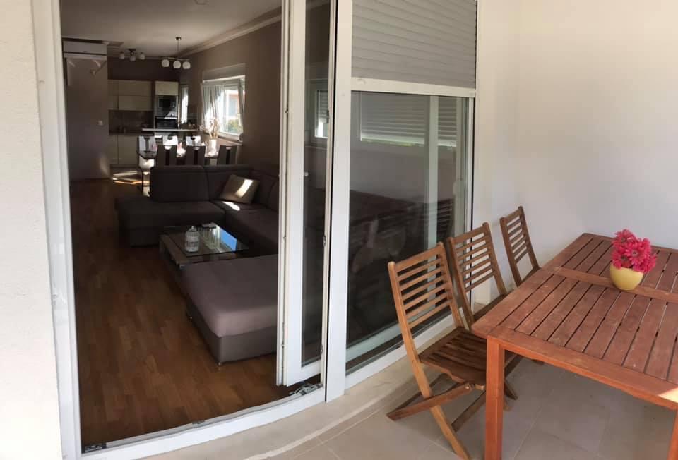 Kompletno i moderno opremljeni apartman nalazi se u samom centru mjesta i prvi red do mora. Plaža, trgovine, ljekarna , pošta ,restorani i barovi sve se nalazi u krugu od 30 m. Gostima je također osiguran parking 300 metara od objekta na privatnom terenu jer u samom centru mjesta nije dozvoljen parking.