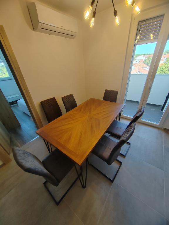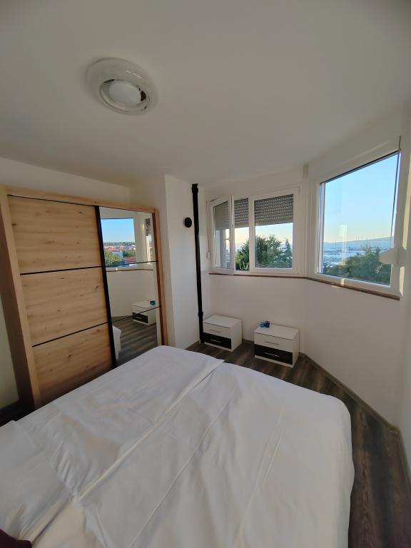 Novouređeni apartman u stambenoj zgradi, 4. kat u strogom centru Biograda. Apartman sadrži dvije spavaće sobe sa king size krevetima. Dodatni ležaj se nalazi u dnevnom boravku na kauču za eventualno dvije osobe. Apartman sadrži sve potrebno za boravak kao npr. perilica rublja, perilica suđa, i sav pribor potreban za kuhinju. Posteljina je uključena u ponudu dok ručnike sami donosite.