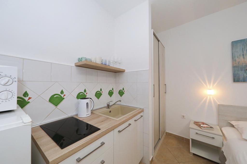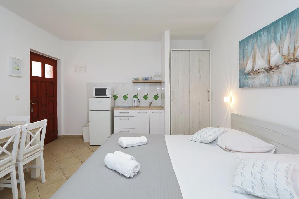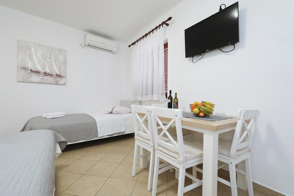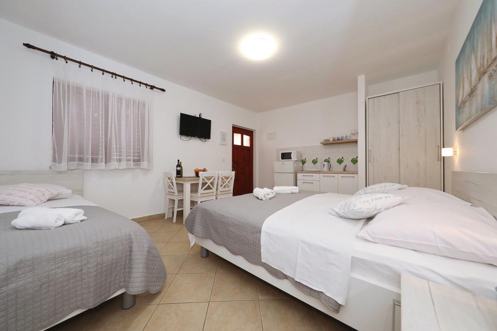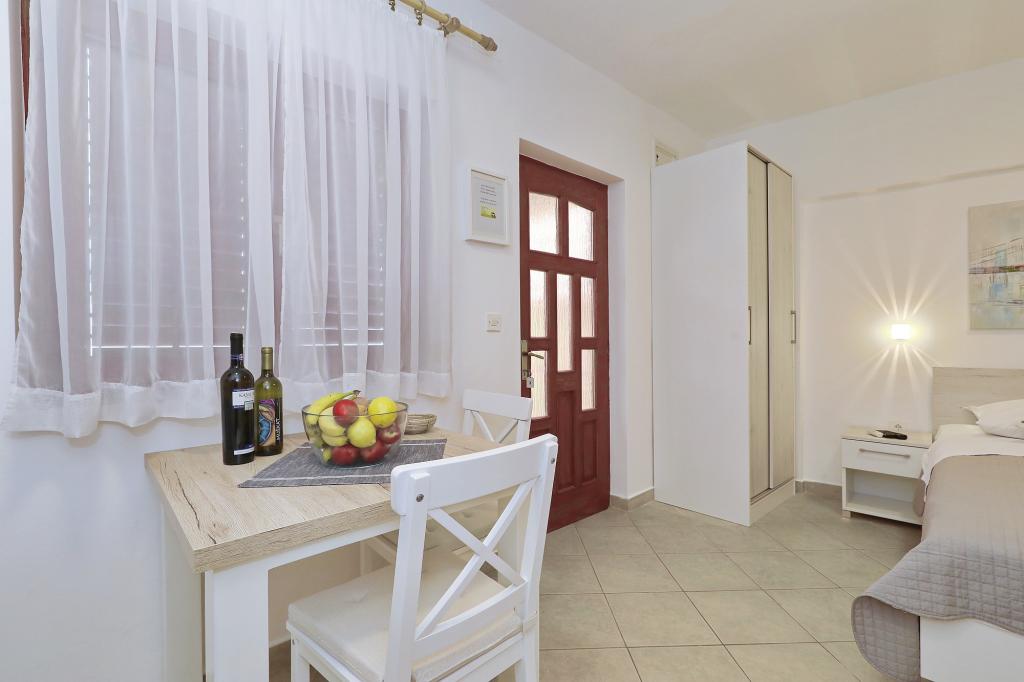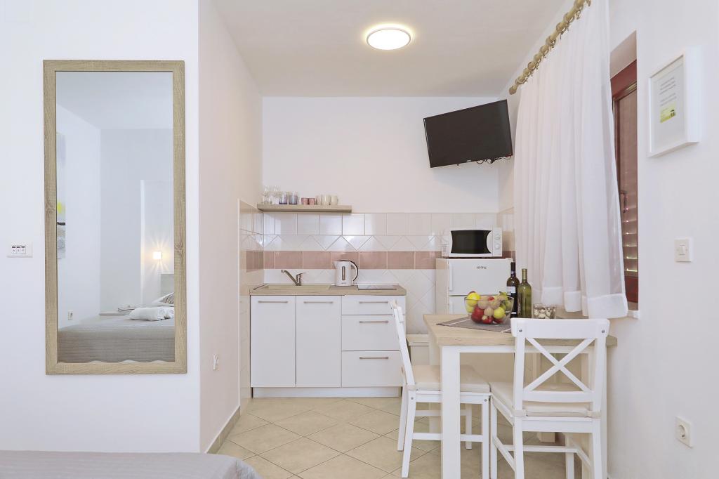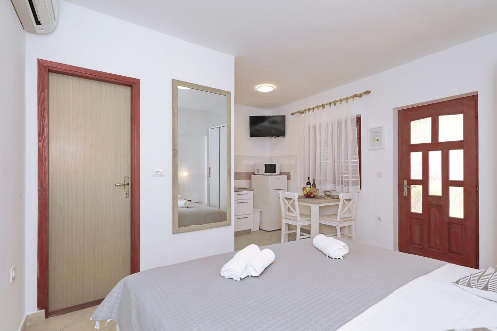 Predivno uređeni i funkcionalni apartmani i studio. Boravili smo u Studio+1, predivna terasica za sjedenje ispred, plus za odložiti mokre stvari s plaže, parkirno mjesto uz apartman... plaža jako blizu s malim djetetom odlično 10+