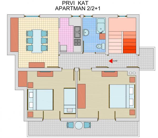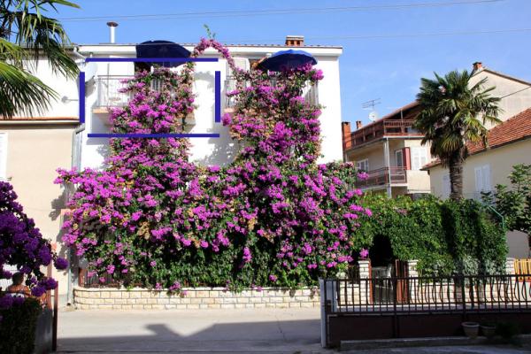 Obiteljska kuća u kojoj se nalaze apartmani je u širem centru grada, na samom rubu park šume Soline u kojoj se nalazi glavna plaža, teniski tereni, disco club i drugi zabavni sadržaji. U kući se nalaze tri apartmana i to jedan apartman studio za dvije osobe, apartman studio za četiri osobe i apartman sa dvije spavaće sobe za ukupno pet osoba. Apartmani su opremljeni sa svim potrebnim osnovnim uređaji i pomagalima. U apartmanima je omogućen bežični pristup internetu, Svaki apartman ima balkon i klima uređaje. Udvorištu kuće je roštilj. Korištelnje roštilja je besplatno. Parkirati je moguće u garaži i na jednom parkirnom mijestu uz kuću, a ostala su parkirna mjesta, kod susjeda, nedaleko od kuće.