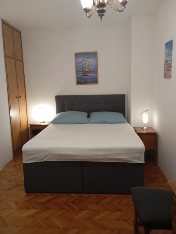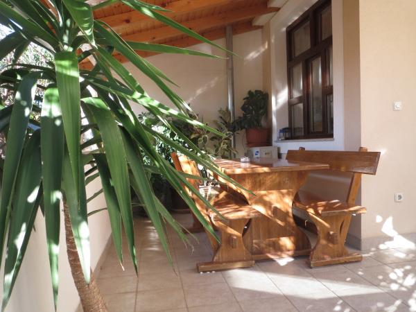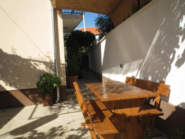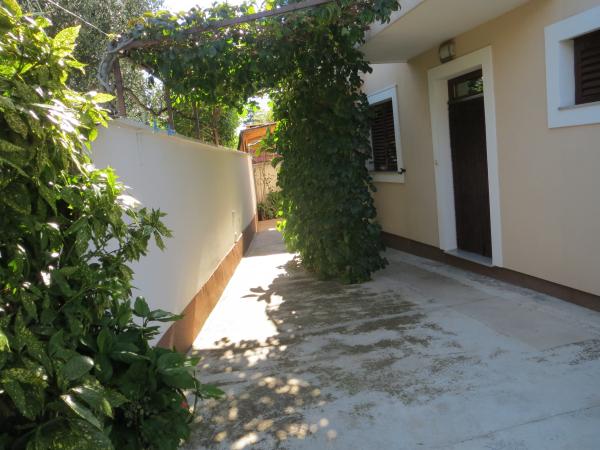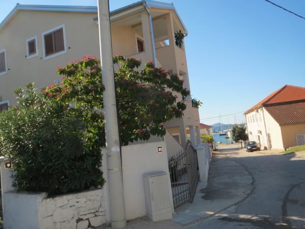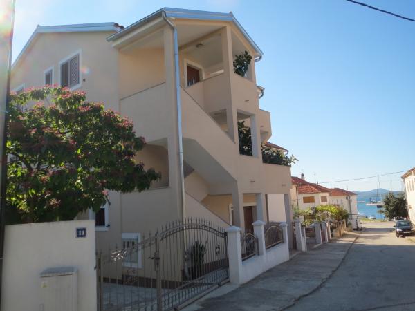 Apartmani se nalaze prizemno u sklopu objekta. Veći apartman ima parking unutar dvorišta, manji apartman ima veliku terasu, besplatni parking izvan dvorišta. Kuća je 50 m od mora, blizu centra na mirnom djelu grada, blizu marine, 150 m od plaže, sve je blizu restorani, trgovine, apoteka, jednom riječi kad stignete, parkirate i ne koristite auto do završetka odmora.