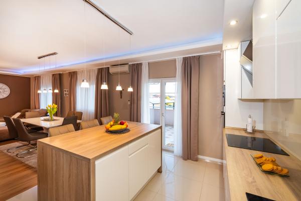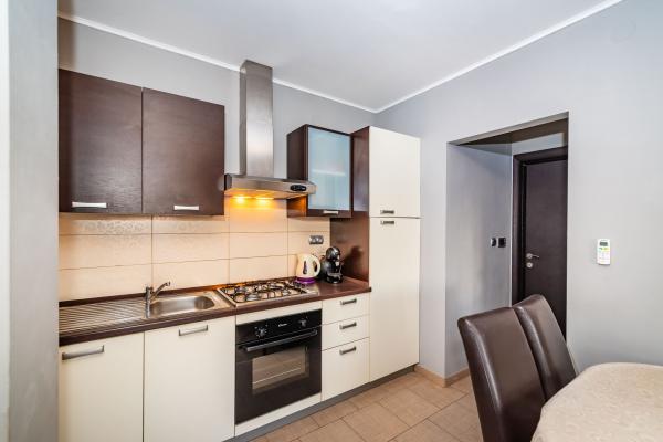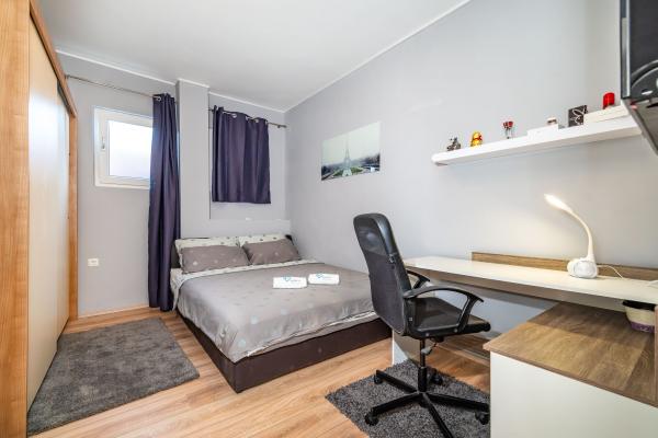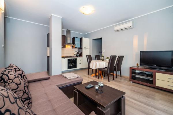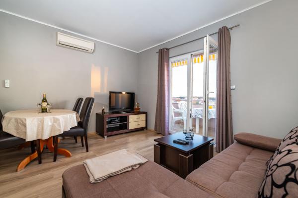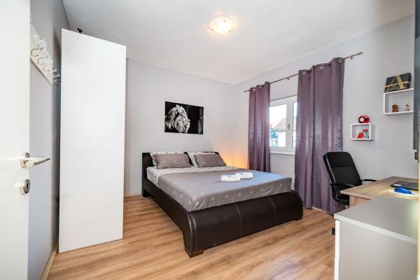 Novouređeni, moderno opremljeni, klimatizirani apartmani u blizini Bure shoping centra, u mirnom dijelu grada, pored igrališta. Plaža i centar grada udaljeni su cca 900 m ili 10-15 minuta laganog hoda. Objekt ima vanjski grill ( kamin ) u kojem možete uživati. Apartman 6 2 nalazi se u prizemlju objekta te je 2019. god. kompletno preuređen.