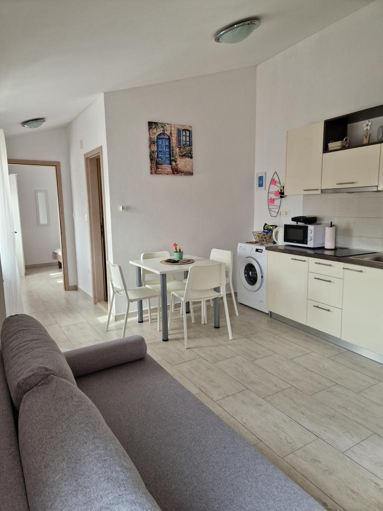 Apartmani AE nalaze se u Biogradu na moru na adresi Splitska ulica 37a. Apartmani se nalaze 700m od plaže Dražice ( max 7min pješke), centar grada udaljen je 500m. Dućan se nalazi 20m od apartmana. Apartman ima jednu spavaću sobu, kauč na razvlačenje, kuhinju, kupaonu, blagavaonu te veliku zajedničku terasu. Dostupan besplatan parking, klima, wifi, perilica rublja, roštilj.