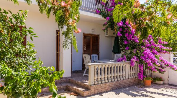 Apartmani Ana se nalaze u mirnom, zapadnom dijelu grada Biograda na Moru, u neposrednoj blizini borove sume. Najbliza plaza Bosana ( sljuncana plaza ) udaljena je svega 500 metara ili 8 minuta laganog hoda, dok je plaza Soline ( jedina pjescana plaza u Biogradu ) udaljena 3 km. Najblizi trgovacki centar Lidl udaljen je samo 100 m, a prvi restoran 200 metara. Marina Kornati nalazi se na 5 minuta hoda, a centar grada na laganih desetak minuta. Kuca posjeduje svoje parkiraliste i vanjski gril.