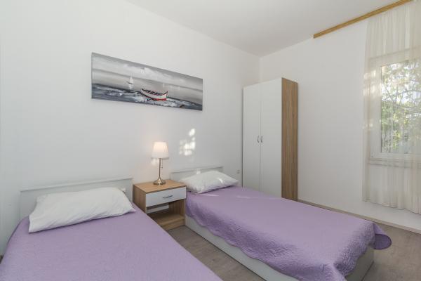 Kompletno renovirani i opremljeni apartmani u mirnom predjelu Biograda na Moru. Samo 50 m od shopping centra i dječjeg igrališta, te 5 minuta pješice do plaže. Apartmani se nalaze u prizemlju kuće s dvorištem, te je pogodno za starije osobe i osobe s lakšim tjelesnim invaliditetom. U cijeni su uključene boravišna pristojba, klima i upotreba mašine za rublje. Mogućnost spajanja još dvije sobe s kupaonicom za veću grupu. Nadamo se susretu s našim prvim gostima i da ćete uživati u čarima Biograda.