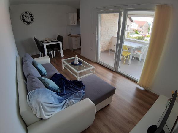 Kompletno i suvremeno opremljeni apartmani u mirnom predjelu grada Biograda na Moru.Objekt ima prostranu okućnicu,natkriveno parkiralište i garažu,idealno za obitelj s djecom,ali i za ljude koji traže mir,čisto more i lijepe plaže.