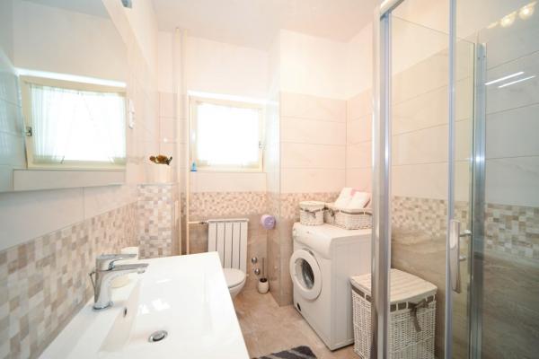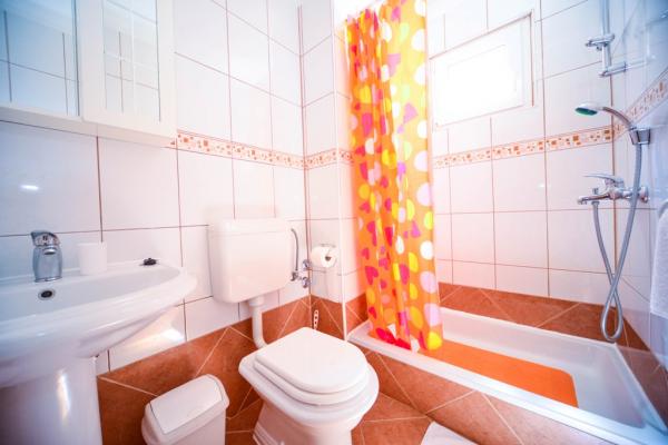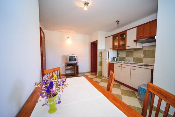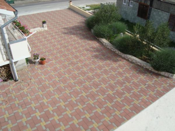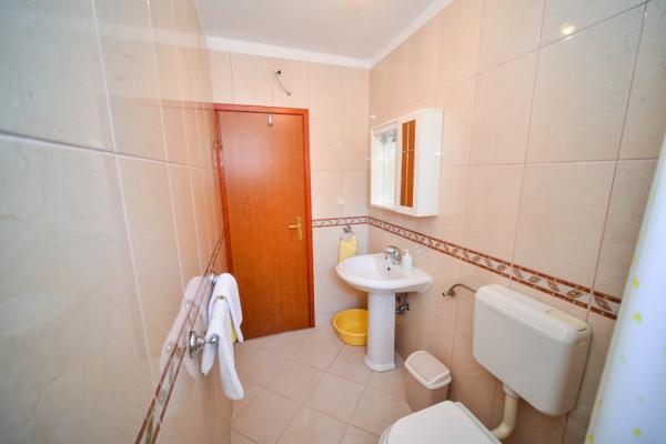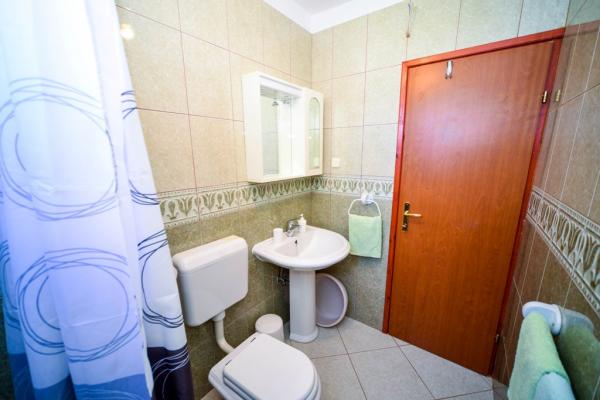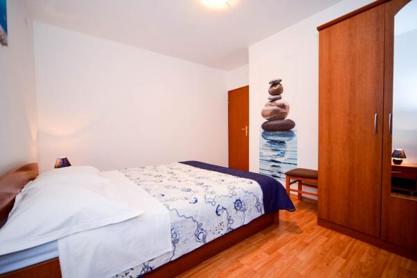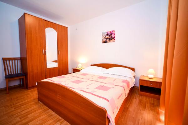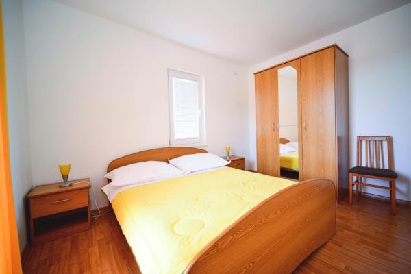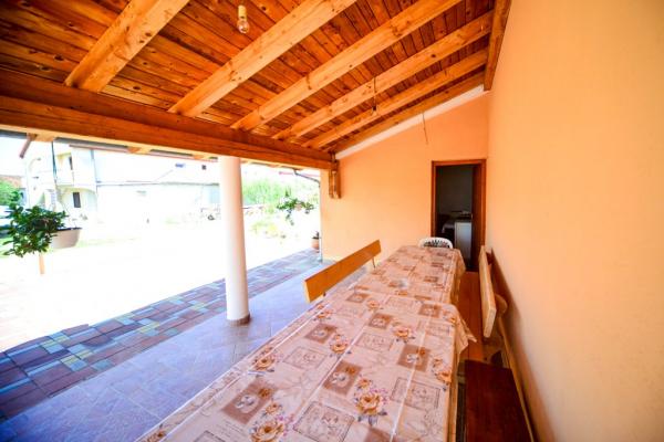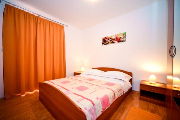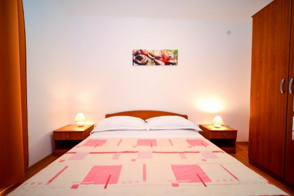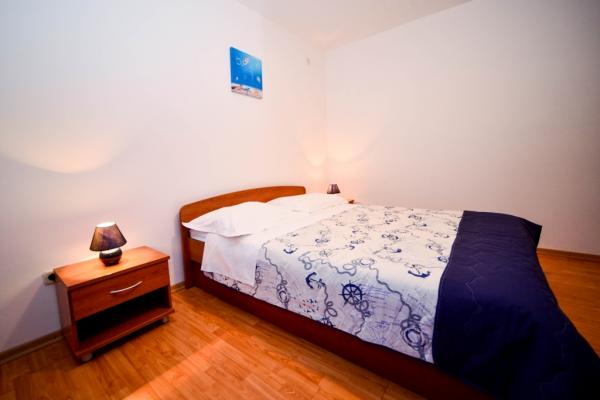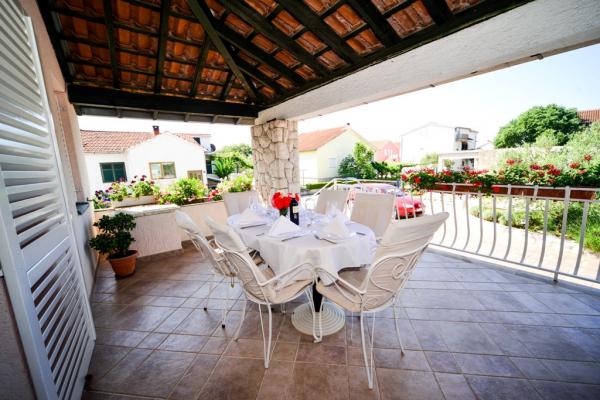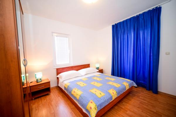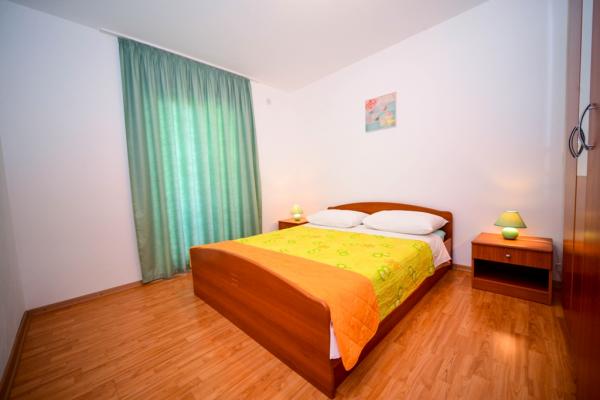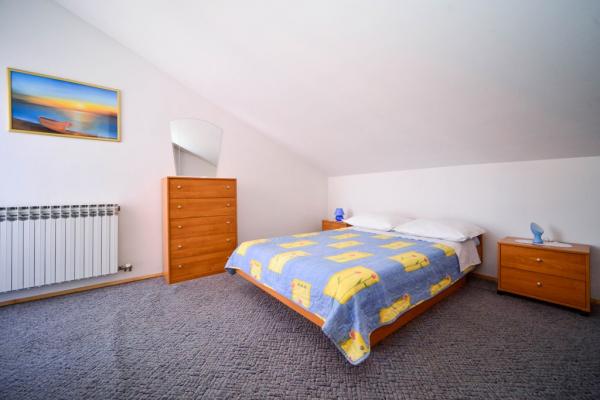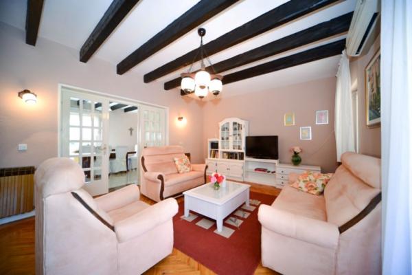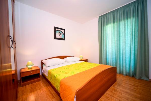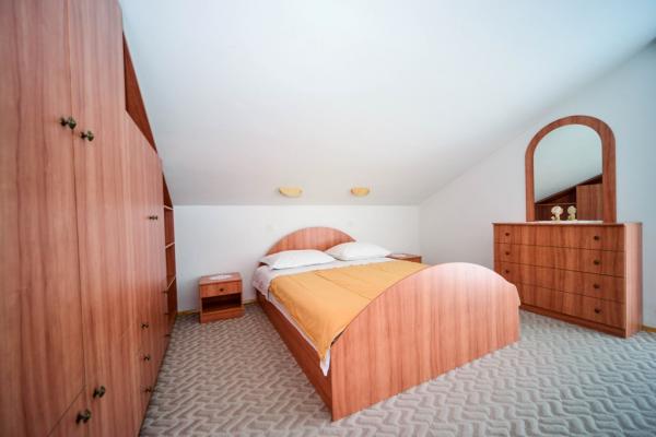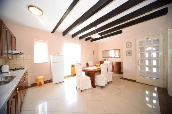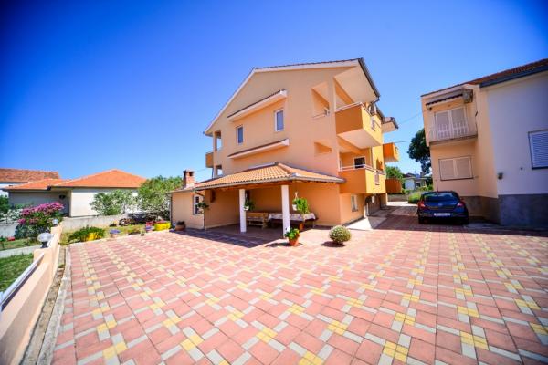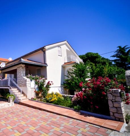 Iznajmljuje se i kuća za odmor, navedena pod apartman (7 2) kapacitet 7-9 osoba, veliki komfor, idealno za obitelji, lijepo uređena i opremljena Kuća se sastoji od prizemlja i potkrovlja. U prizemlju veliki dnevni boravak i kuhinja, 2 spavaće sobe, kupaonica i velika terasa. Potkrovlje se sastoji od dvije spavaće sobe i kupaonice. Svaka soba ima balkon. Prizemlje ima 100m2 i potkrovlje 90m2. Kuća ima okućnicu i uređeni parking. Svaki posjetitelj ima osiguran parking. U dvorištu postoji grill / komin te vanjska terasa s mogućnošću korištenja za sve goste. Najbliža plaža je Bošana, šljunčana plaža udaljena 10-15 min hoda.