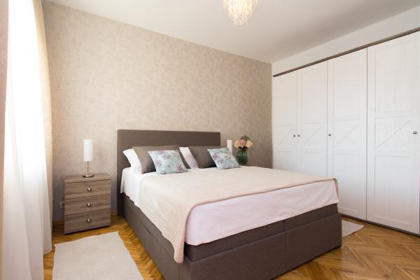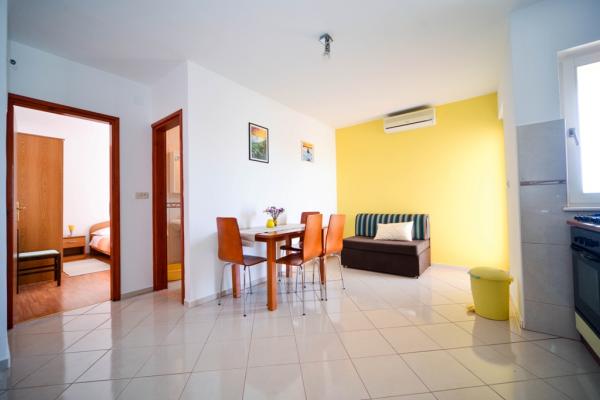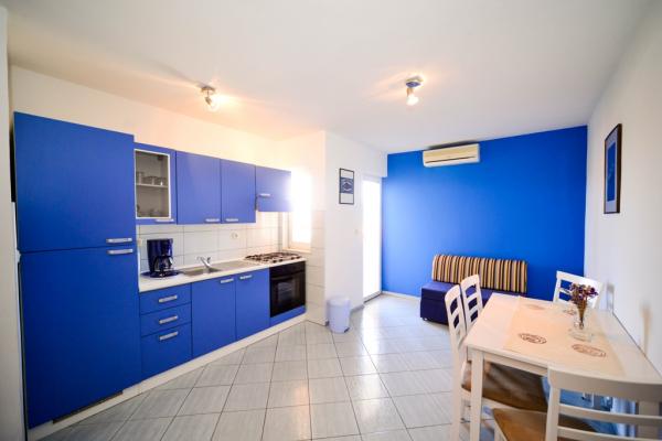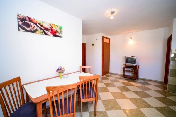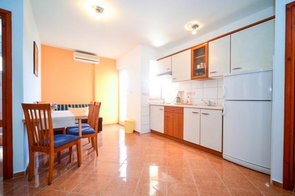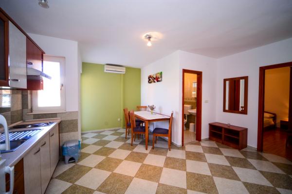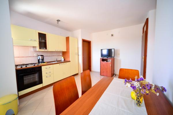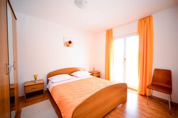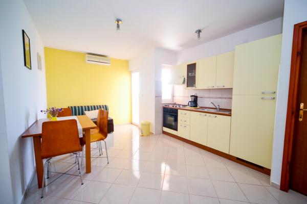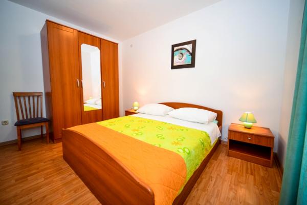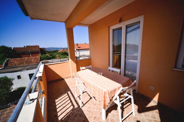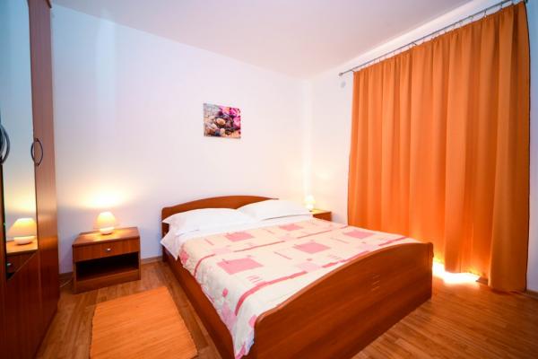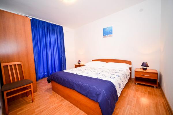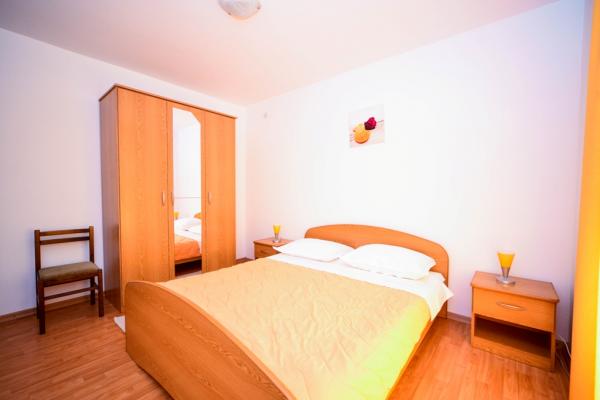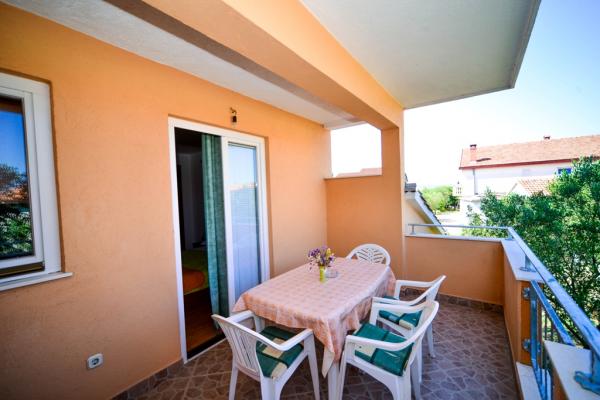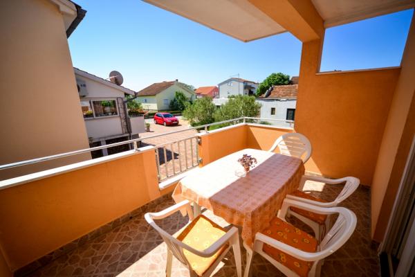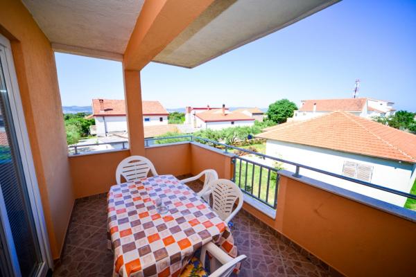 Iznajmljuju se lijepi, kompletno opremljeni apartmani u Biogradu na Moru u mirnom dijelu grada. Objekt ima 4 dvosobna prostrana apartmana, svaki apartman ima 50m2 balkon terasu. Dva apartmana su na prvom katu, a dva na 2. katu s pogledom na more. Svaki apartman ima dvije spavaće sobe sa bračnim krevetima, kupaonu, blagavaonicu, potpuno opremljenu kuhinju, balkon na koji se izlazi iz spavaće sobe i veliku terasu na koju se izlazi iz spavaće sobe i iz kuhinje odnosno blagavaonice. Postoji mogućnost dodatnog ležaja tako da apartman može primiti do 5 osoba. Parking je uređen i ograđen i nalazi se ispred kuće. Svaki posjetitelj ima osiguran parking. U dvorištu postoji grill / komin te vanjska terasa s mogućnošću korištenja za sve goste. Najbliža plaža je Bošana, šljunčana plaža udaljena 10-15min hoda. Fun park Mirnovec udaljen 5 min vožnje. Cijena na upit.