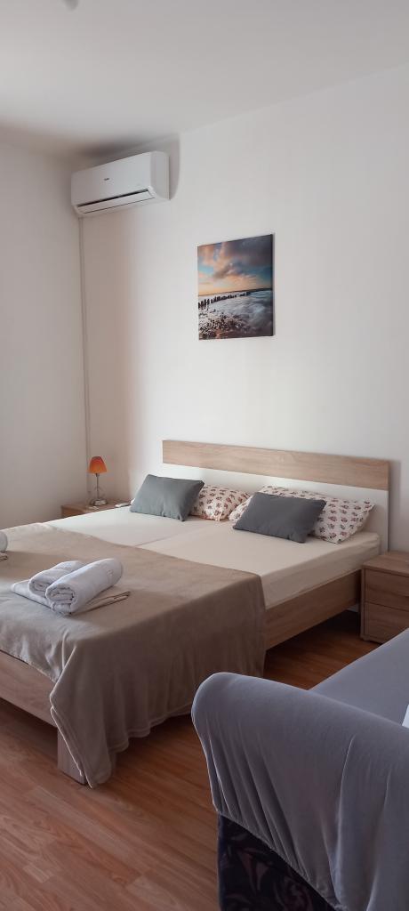Bili smo jako zadovoljni boravkom u ovom apartmanu. Sve je bilo isto kao na slikama uredno, čisto i lijepo uređeno. Studio (soba s kuhinjom i kupaonicom) ima sve što je potrebno za ugodan boravak, uključujući klimu i balkon. Vlasnici su izuzetno ljubazni, gostoljubivi i susretljivi, a opet diskretni sve pohvale za njihov pristup! U okolini vlada mir i tišina, idealno za odmor i opuštanje. Plaža je vrlo blizu, svega nekoliko minuta laganog hoda. Sve pohvale i preporuke rado ćemo se vratiti!