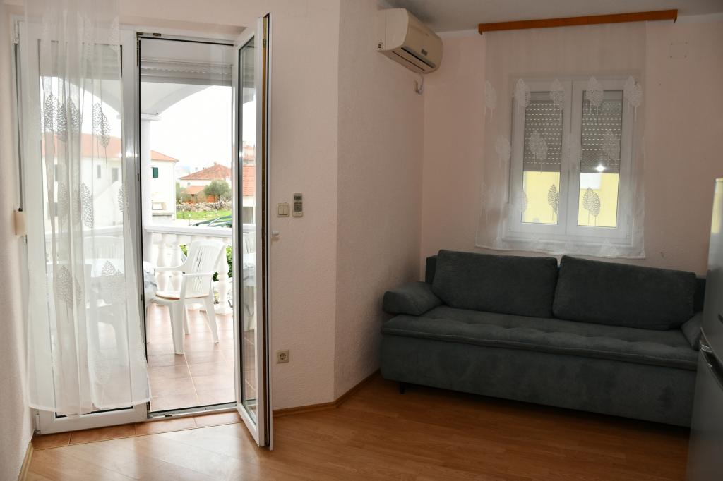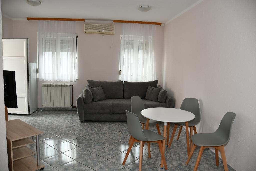 Apartmani se nalaze u mirnom dijelu grada na 10 min hoda do najbliže plaže, restorana, trgovine. dvorište i terase uređene su za druženje, vanjska kuhinja/grill. Apartmani su uređeni jednostavno, sa klimom, TV, Wi-Fi. Svaki apartman sastoji se od spavaće sobe s vlastitom kupaonicom, dnevnog boravka, kuhinje s kompletnom opremom te balkonom za opuštanje. Dočekati će Vas ljubazni domaćini, koji će Vas primiti otvorenih ruku te Vam biti na raspolaganju za sve Vaše zamolbe ili pitanja. Vaši domaćini govore tečno njemački i hrvatski jezik. Naša ponuda učinit će Vaš odmor nezaboravnom uživancijom u pravom mediteranskom ugođaju. Dobrodošli!