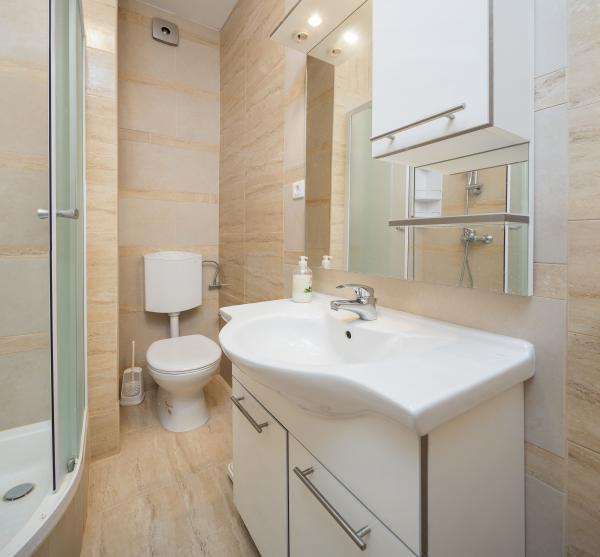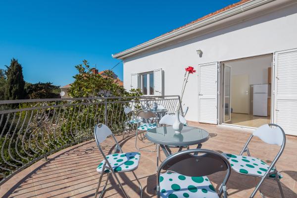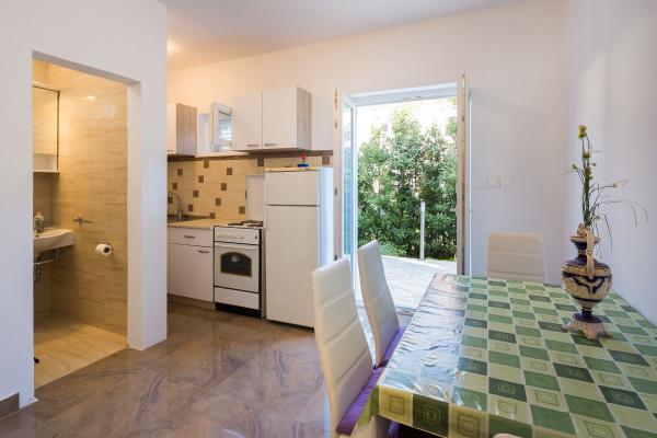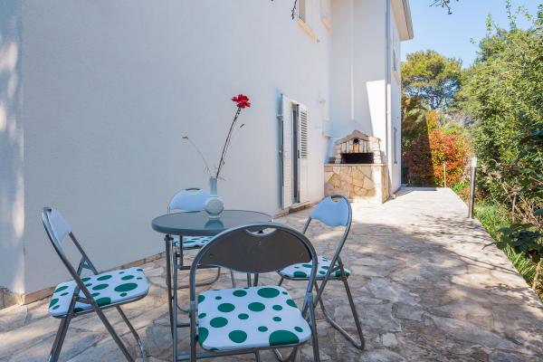 Nova renovirana villa (2017). Villa se sastoji od 5 apartmana. Apartman posjeduje dvije spavace sobe, dnevni boravak sa kaucem za 2 osobe. Svaka soba ima vlastito kupatilo. Besplatan internet, klima, parking, rucnici i posteljina. Apartman ima veliku terasu okruzenu zelenilom, odmah iza zelenila nalaze se prekrasne plaze, udaljene svega 120 metara od apartmana. Apartman ima prekrasni veliki vrt, pun zelenila, odmah iza zelenila nalaze se prekrasne plaze. Lokacija je mirna ugodna i luksuzna. Restorani, ducani, plaze odmah su u samoj blizini. 80m udaljena od apartmana, nalazi se setnica, koja posjeduje razne sadrzaje te direktno vodi do samog centra grada. Plaza posjeduje plavu zastavu, oznaka za najbolje plaze u svijetu.