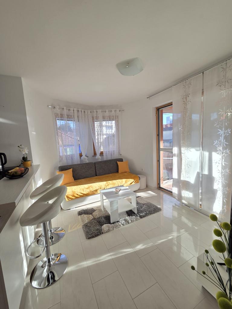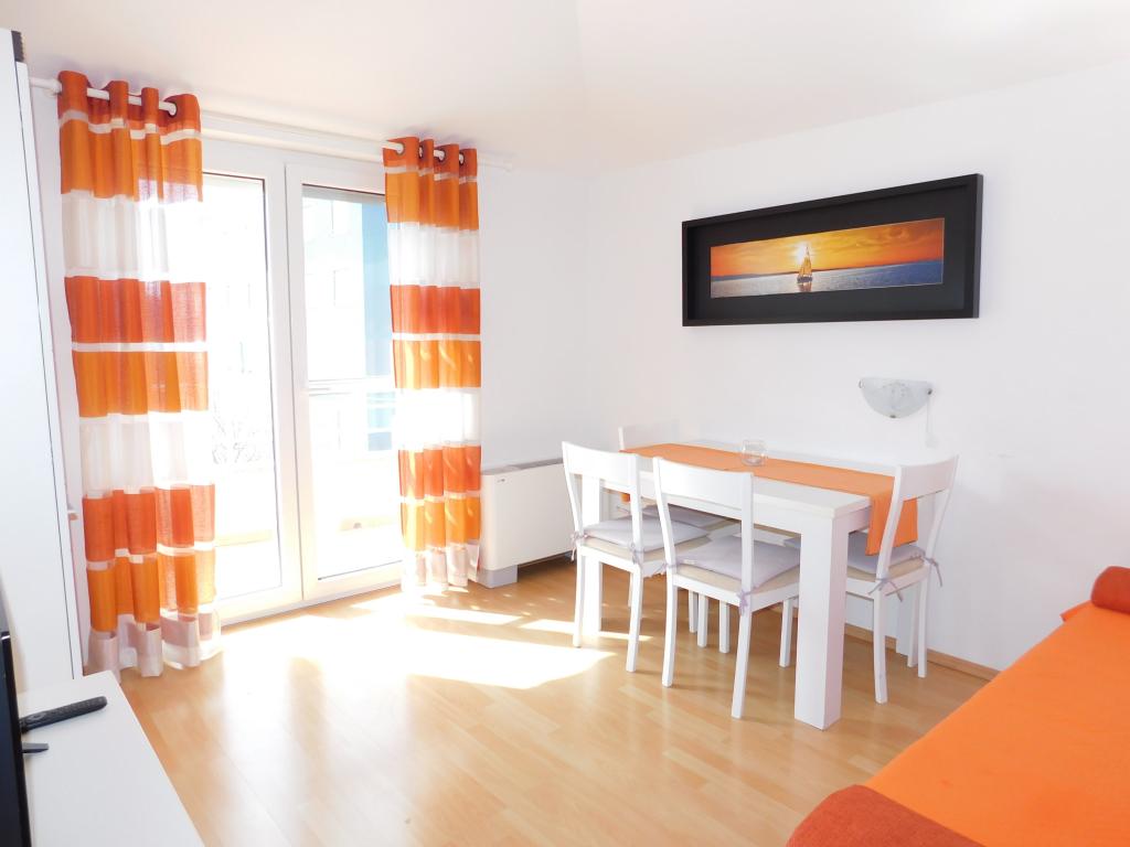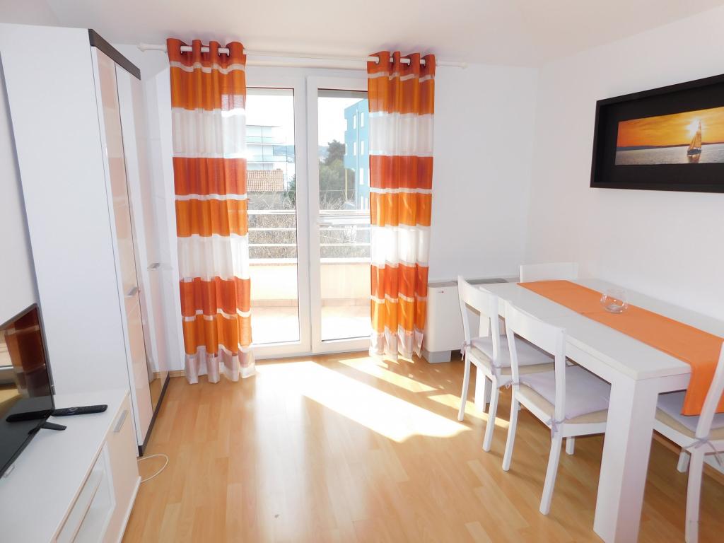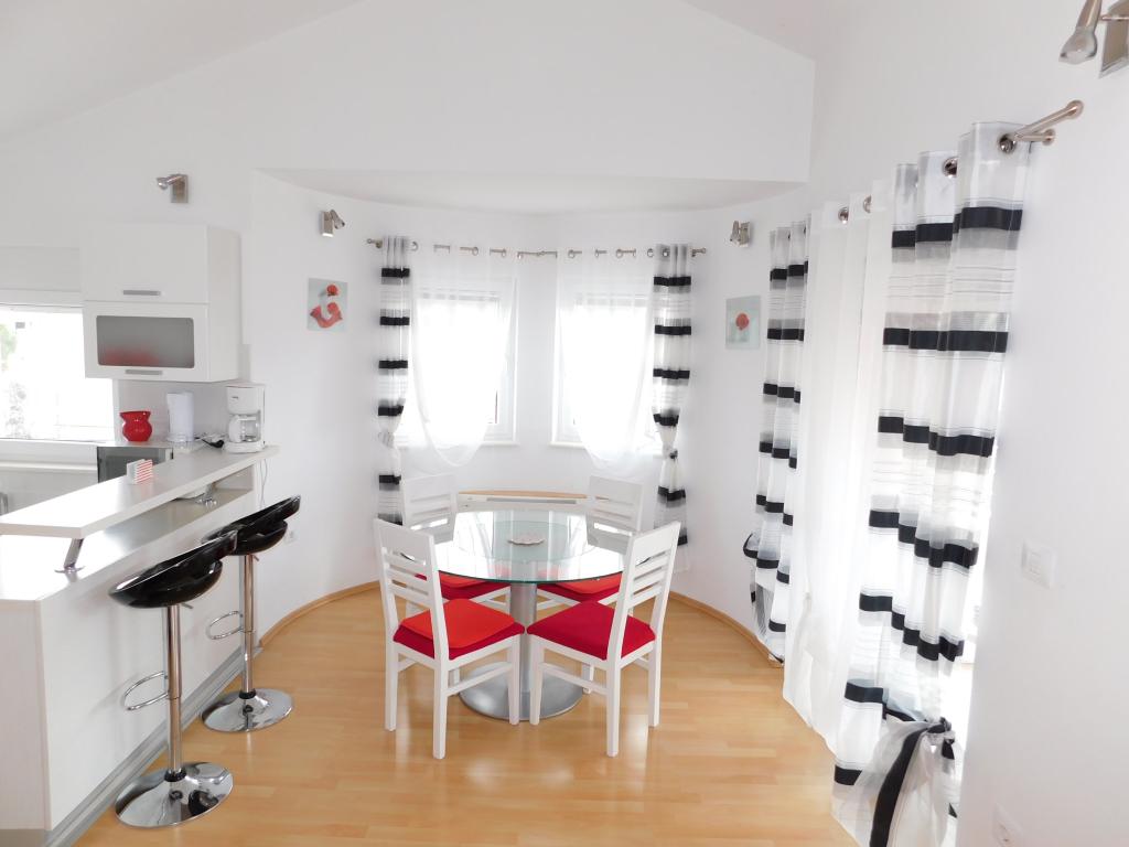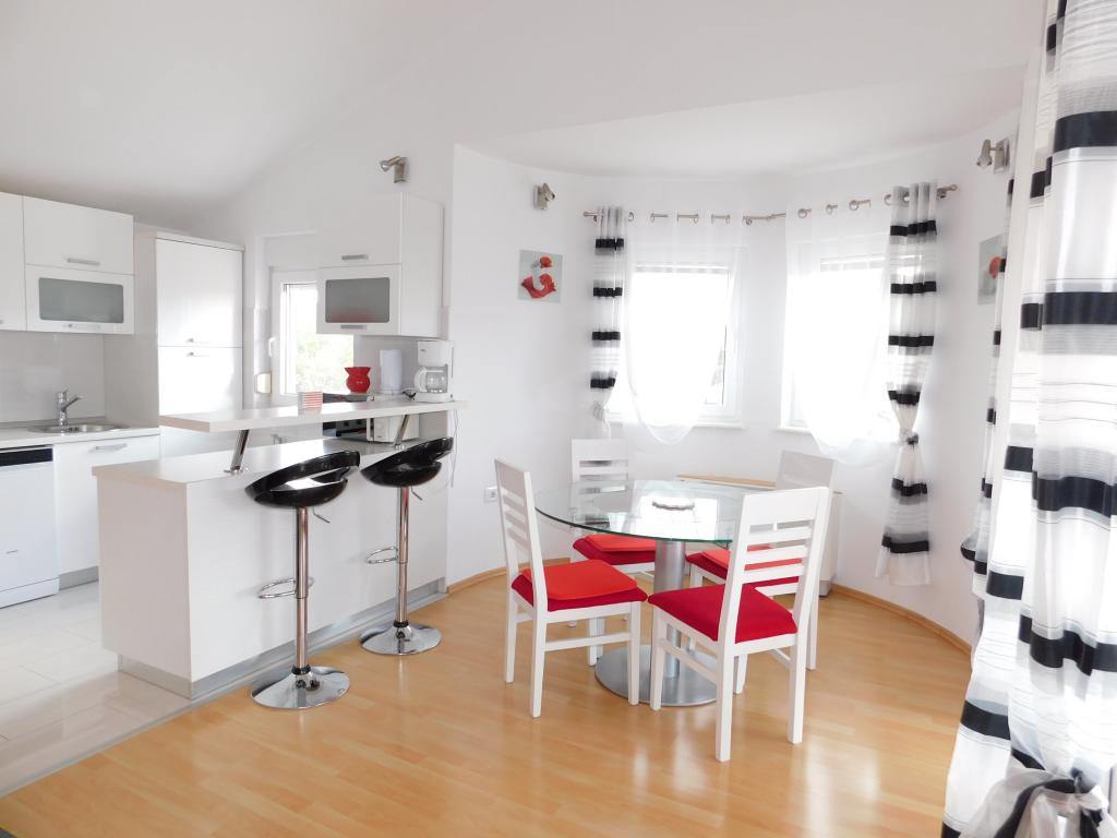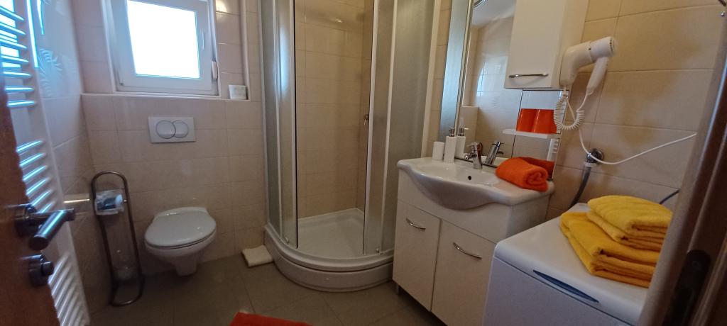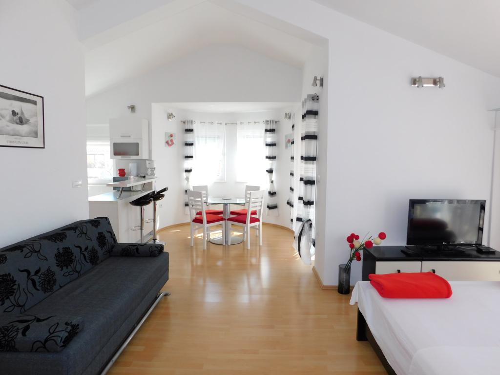 Boravili smo u zelenom apartmanu za 4 osobe. Apartman je lijepo, moderno uređen, lokacija odlična, no za cijenu od 120 € očekivali smo nešto više. Nedostaju sitnice koje su važne i zbog kojih se gosti vraćaju ili ne vraćaju. Za navedenu cijenu očekivali smo barem komplet od 6 čaša, 6 tanjura, žlica i ostalog pribora za jelo. Kao i u drugim apartmanima u kojima smo ranije boravili u kuhinji bi trebao biti prašak za pranje suđa, nešto malo šećera, soli, eventualno začina, malo ulja, ocat i ostale potrepštine tek toliko da imamo za prvi tren. U nekim drugim apartmanima goste dočekuju sa zdjelom voća ili buteljom vina. Također nedostaje suncobran na terasi i udobne stolice. Terasa zbog toga nije upotrebljiva. U boravku je prekrasan kauč, ali je prilično neudoban kao i krevet u dječjoj sobi. Televizija ima samo nekoliko osnovnih tv programa. Sve u svemu lijep apartman, ljubazni domaćin, ali nedostaje dodatna usluga koja bi opravdala ovako visoku cijenu.