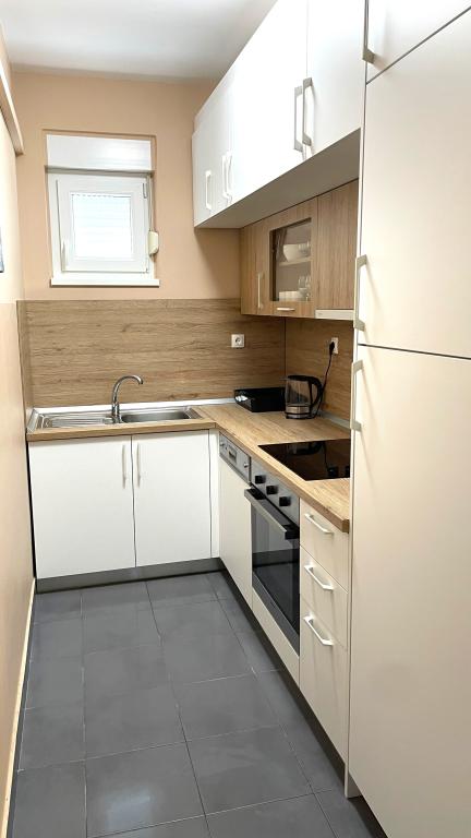 Naši apartmani smješteni su u Biogradu na moru samo 7 minuta pješice iznad glavne gradske plaže Dražica. Najbliža trgovina nalazi se preko puta kuće, a središte grada udaljeno je 600 metara. U blizini se također nalaze brojni kafići i restorani, a samo 3 minute pješice od smještaja nalazi se ljetno kino pod zvijezdama. Svi apartmani su opremljeni klima-uređajem, TV-om, besplatnim Wi-Fi-om, sve bez dodatne naplate, te sadrže potpuno opremljenu kuhinju sa perilicom posuđa, kuhalom i aparatom za kavu. U apartmanima Vas dočekaju besplatne toaletne i kuhinjske potrepštine zajedno sa čistim krpama i ručnicima. U dvorištu kuće nalazi se vanjski kamin sa opremom za roštilj, a dostupan je i besplatan parking.