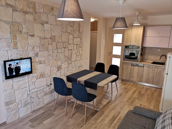 Preporučam svih deset. Prekrasan apartman, prostran, potpuno opremljen, sa svime što je potrebno. Bilo nas je šest, dvoje odraslih i četvero djece. Na raspolaganju su bila 4 bicikla, mogućnost roštiljanja, ali to nismo koristili. Vlasnik je ljubazan, susretljiv i uslužan. Komunikacija brza i bez problema. Uplatili smo depozit, dobili smo i potvrdu o uplati depozita. Plaža Kumenat je u blizini, dosta veliko kamenje u vodi, išli smo s djecom i na obližnju plažu Soline, gdje su bili restorani, šetnice, atrakcije za djecu, voda je dugo bila mala, idealno za djecu. Zaista super odmor, hvala Robert Kovačiček.