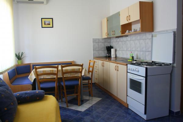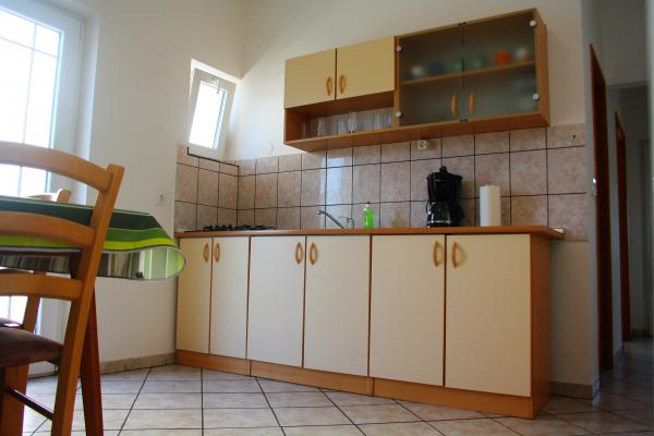 Apartmani Kus su novi, suvremeno opremljeni, u mirnom i ugodnom okruženju, u blizini borove šume. Udaljeni su oko 15 min. hoda od plaže Bošana. U sklopu kuće je 5 apartmana, . Svaki apartman ima svoje parkirno mjesto. U dvorištu se nalazi veliki grill, sa mogućnosti pečenja i na ražnju. Uz grill se nalazi prostorija sa kuhinjom, komplet opremljena za pripremu i posluživanje jela za 20 osoba, koju gosti imaju na raspolaganju. U kući je vlasnik cijelo vrijeme i na raspolaganju gostima.