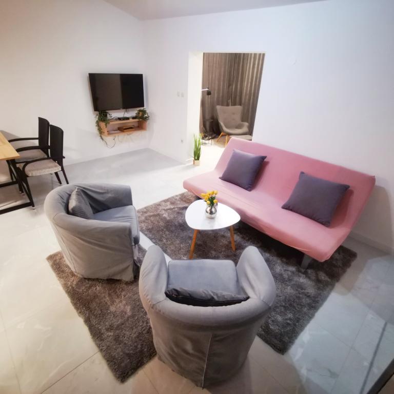 Pročitaj više Smještajne jediniceDolazak gosta u apartman po dogovoru - odnosno,ukoliko nije drugačije dogovoreno od 10:00 sati, odlazak iz apartmana do 10:30 u jutro. Za potvrdu termina i rezervaciju potrebno je uplatiti akontaciju u iznosu od 30% od cjelokupnog iznosa rezervacije. Primljena akontacija se ne vraća. Ukoliko akontacija nije uplaćena, smatra se da rezervacija nije potvrđena. Rezervacije se primaju isklučivo putem e-maila.