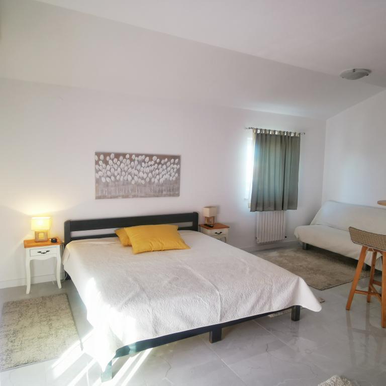 Dragi gosti, smješteni smo u mirnom dijelu Biograda na predjelu Rust i blizini Marine Kornati. U ponudi imamo 3 studio apartmana i 3 jednosobna apartmana. Nalaze se na prvom i drugom katu. Svi su opremljeni kuhinjom,kupaonicom,klima uređajem i wi-fi. Parking je osiguran i pod video nadzorom. Boravišna pristojba uključena je u cijenu (1eur/dan po osobi). U cijenu je uključeno: posteljina,ručnici, suđe i posuđe, korištenje klime, boravišna pristojba, 1xkorštenje perilice za rublje. U blizini se nalazi shoping centar, liječnik, benzinska pumpa. Do plaže Dražica ima oko 10-15min pješice (800m), kao i do centra. Dobro nam došli i želimo vam lijepi provod na zasluženom odmoru!