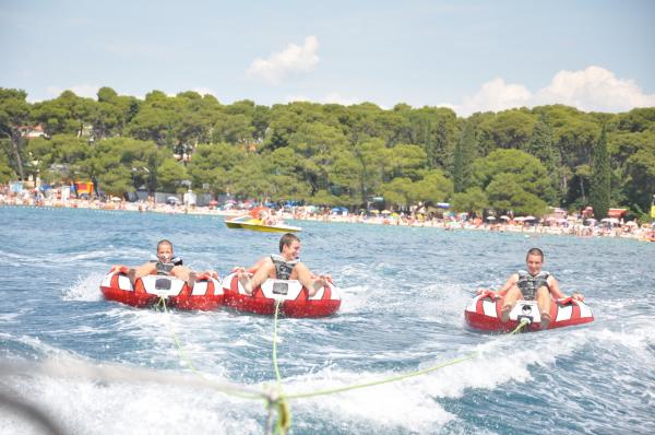Dragi gosti, u ponudi imamo: najam brodice, vožnju padobranom - parasailing, bananom, vožnju u tubama ili skijanje na vodi, brzi taxi prijevoz ili obilazak Pašmanskog kanala. Jedna vožnja po izboru je gratis. * u cijenu je uključeno: posteljina, ručnici, wc papir, aparat i tablete za komarce, suđe i posuđe, korištenje klime, boravišna pristojba (1e/dan po osobi).