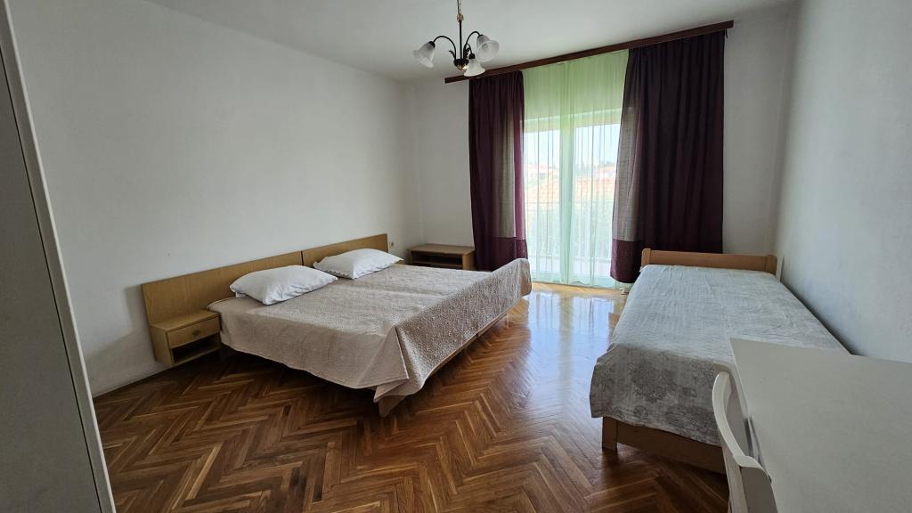 Apartmani se nalaze na prvom katu obiteljske kuće. Parkiranje je u dvorištu. i u cijeni je apartmana. Apartman 1 ima kuhinju u kojoj je kauč koji može biti dupli ležaj ( samo za djecu do 12 godina).kupatilo i spavaču sobu za dvije osobe. Apartman 2 ima dvije odvojene spavače sobe. U jednoj je pomoćni ležaj (samo za dijete do 12 godina) kuhinju i kupatilo. Svaka prostorija ima svoj balkon