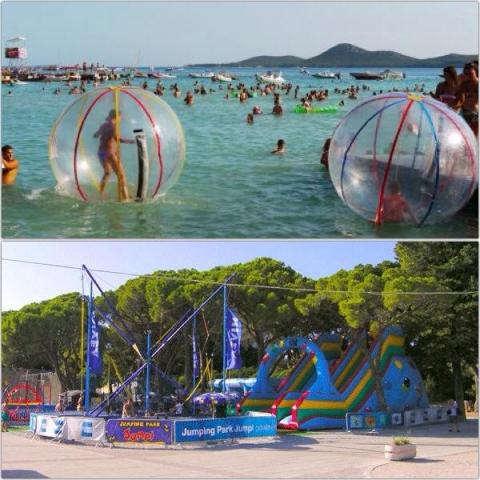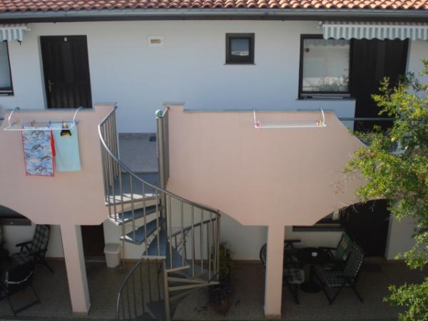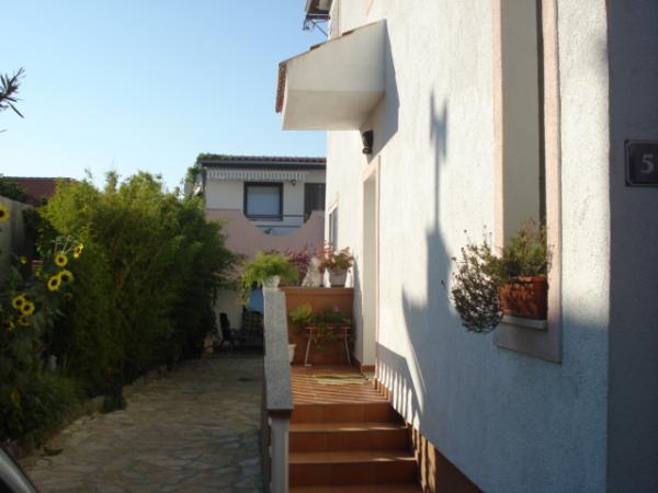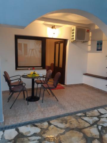 Apartmani se nalaze u mirnom dijelu grada na 5 min hoda do najbliže plaže, marine, restorana, trgovine. dvorište i terase uređene za druženje sasadržajem za djecu, vanjska kuhinja/grill. Uređeni su jednostavno, sa klimom, TV/SAT, W-FI, prizemni su pogodni za manju djecu i prohodni za invalide(bez pragova).