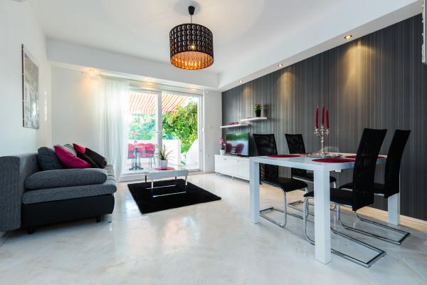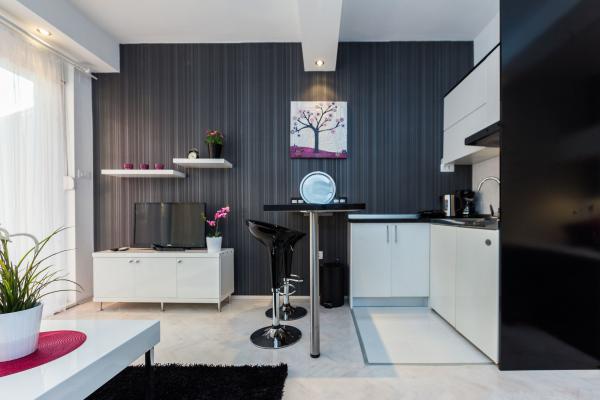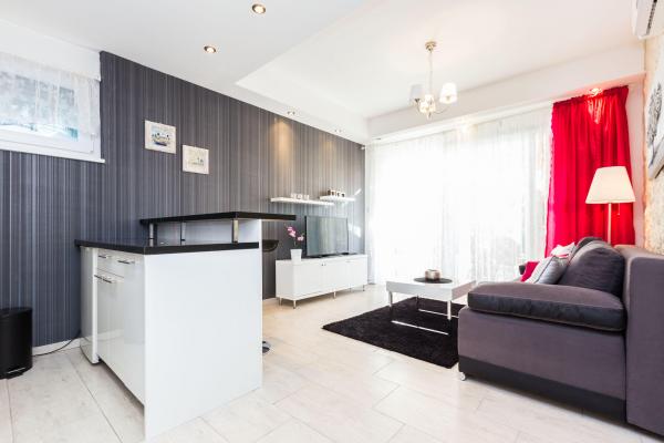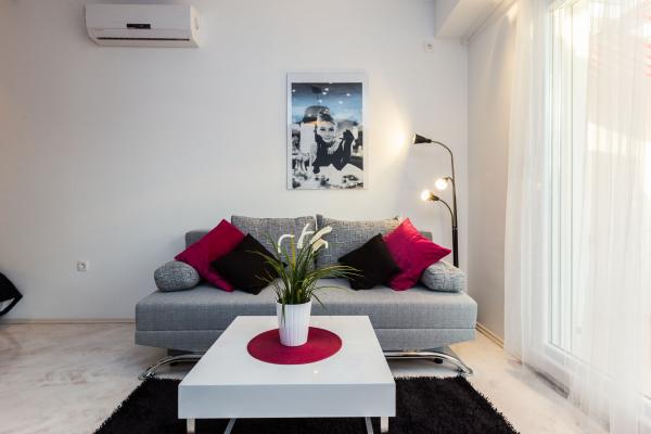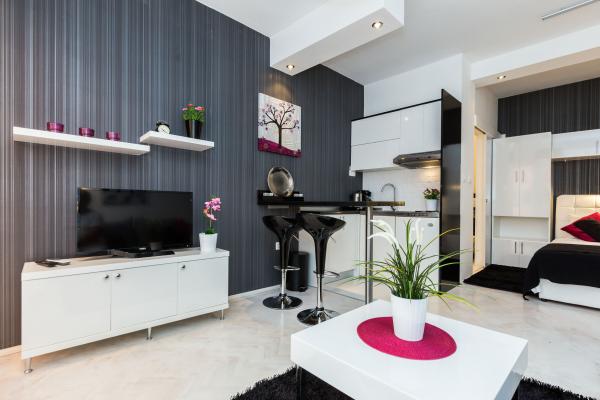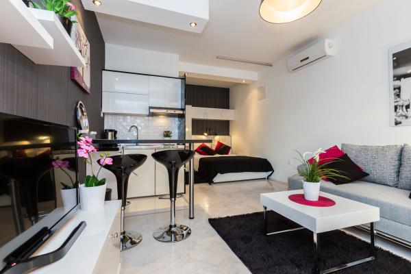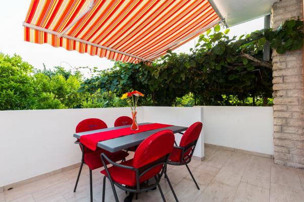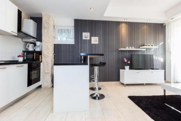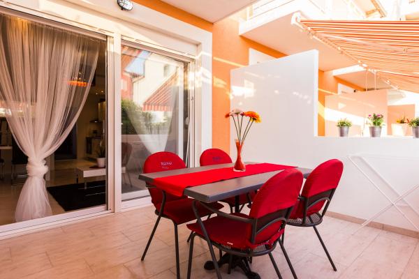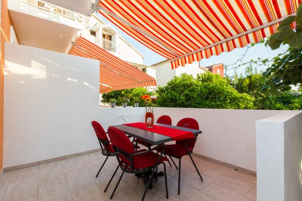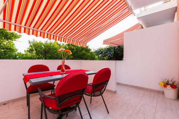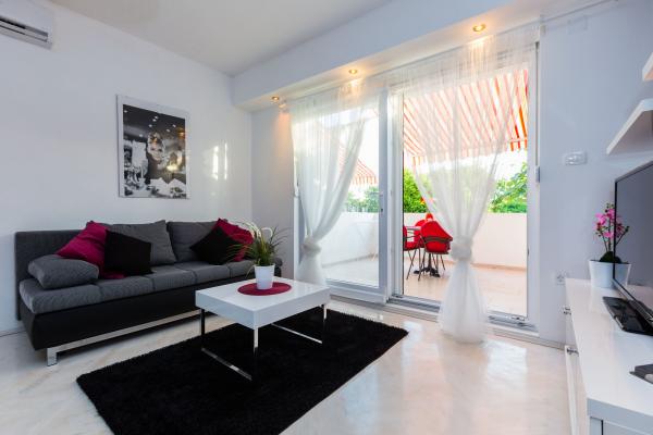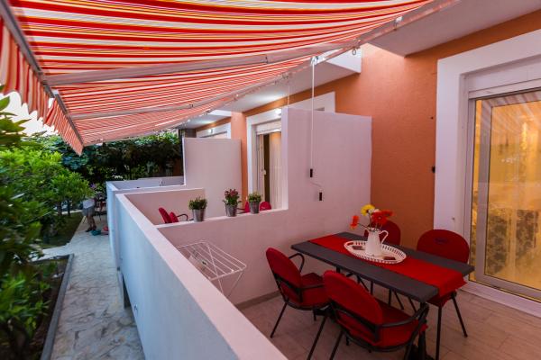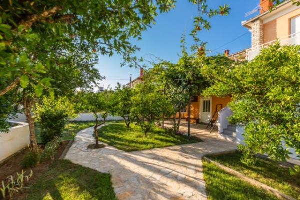 Luksuzni apartmani smješteni u širem centru, udaljeni 3 min od plaže i 5 min hoda do starog dijela grada. Potpuno novi i kompletno opremljeni, Svaki apartman ima zaseban ulaz i svoju terasu na kojoj se možete opuštati u toplim ljetnim noćima. Okruženi su prekrasnim vrtom sa stablima naranača i limuna. Prirodnu hladovinu osigurava loznica kivija ispod koje se nalazi ljuljačka na kojoj možete uživati u npr. nekom osvježavajućem piću. Svježu ribu možete peći na grillu u vrtu i koristiti stol u sjenici vrta. Kuća je smještena tako da vam je sve blizu a opet se nalazi u oazi mira koja vam omogućava odmor i opuštanje. 70 m od apartmana je supermarket i marina, a 200 m shopping centar. Svaki apartman ima parking, klimu, satelitsku tv, wifi, internet, sef, mikrovalnu, kuhalo vode, aparat za kavu, toster, mikser, glačalo, stol za glačalo, fen itd. Svaki gost koji boravi u našim apartmanima 7 dana i duže dobiva gratis večeru u našem restoranu Roko a sve ostale dane 10% popusta kao i svi ostali