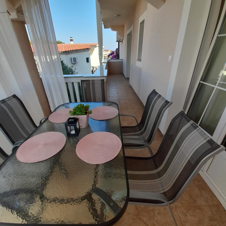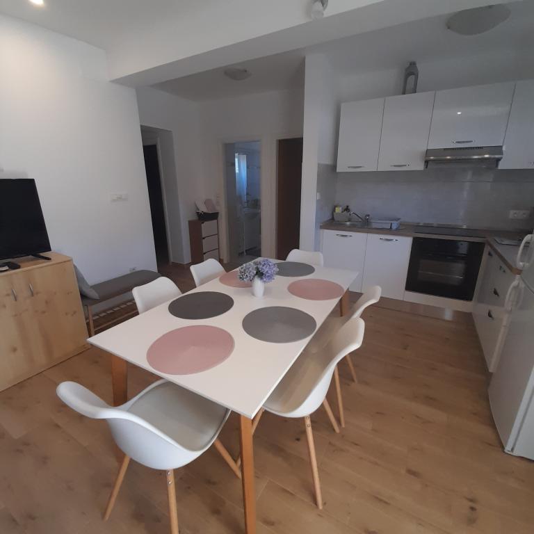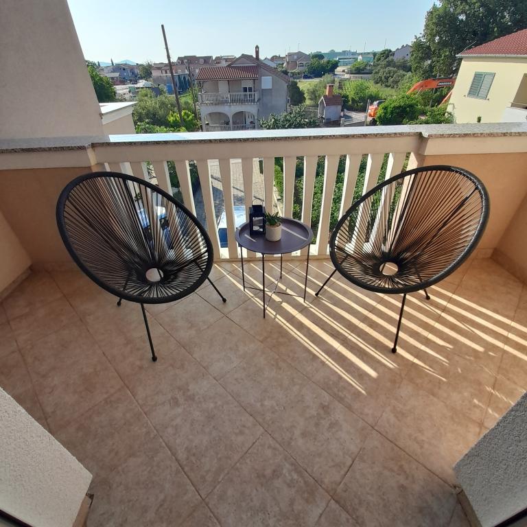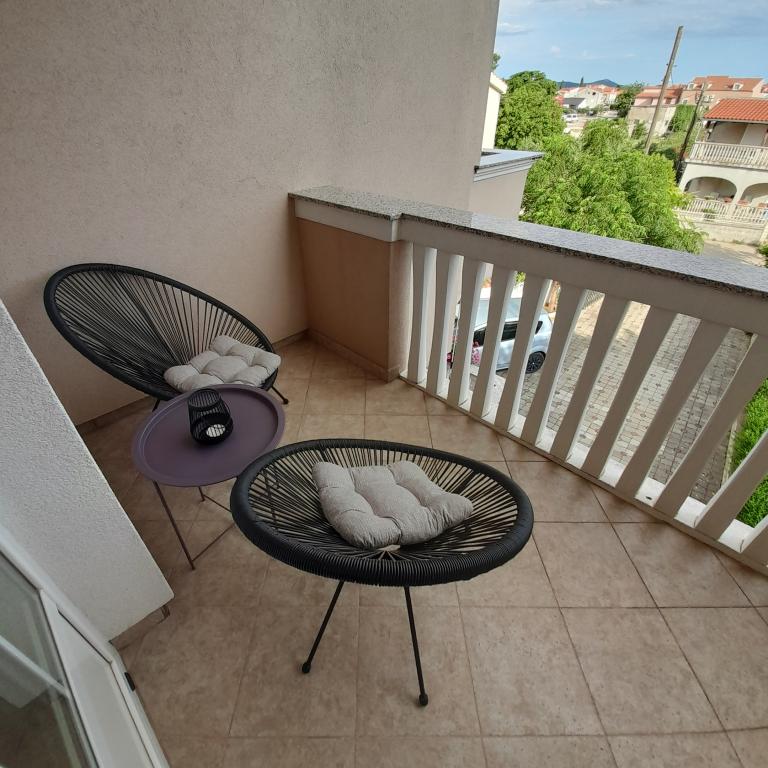 Apartmani nude komforan smještaj u dva prostrana apartmana sa velikim terasama. Smješteni su u obiteljskoj kući u novouređenom objektu, u ulici bez prometa, udaljeni od gradske buke. Smještaj je pogodan za obiteljski odmor, ljetovanje grupa prijatelja kao i za aktivni odmor u Biogradu. Do plaže Dražice i Solina ima desetak minuta šetnje, a isto tako do centra grada.