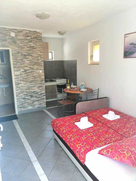 Apartman sa tri sobe, kuhinjom, wc-om i hodnikom, smiješten u mirnom dijelu grada iznad glavne piješčane plaže Soline 10 min hoda. Apartman je u prizemnju sa velikim dvorištem idealnim za dijecu i roštiljem za odrasle. Besplatan parking je osiguran odmah ispred apartmana. Idealno mijesto za opustiti se.