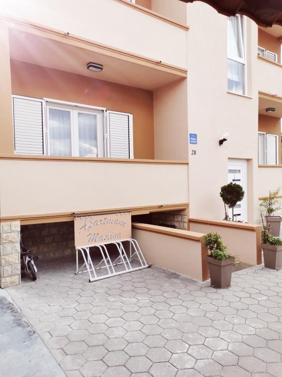 Apartmani Maslina se nalaze u mirnom dijelu grada otprilike 10 min hoda do najbliže plaže Soline. U kući su 4 apartmana, 3 x veličine 40 m2 sa balkonima i terasama, 1 x 45 m2 sa balkonom. Svi apartmani su opremljeni klimom, besplatnim WIFI-om, Sat, /Tv, parkirnim mjestom i roštiljem u dvorištu, te sadržajima prikladnim za manju djecu. Za veće obitelji moguće je izmajmiti više slobodnih apartmana odjednom a za manji broj osoba cijena je povoljnija.