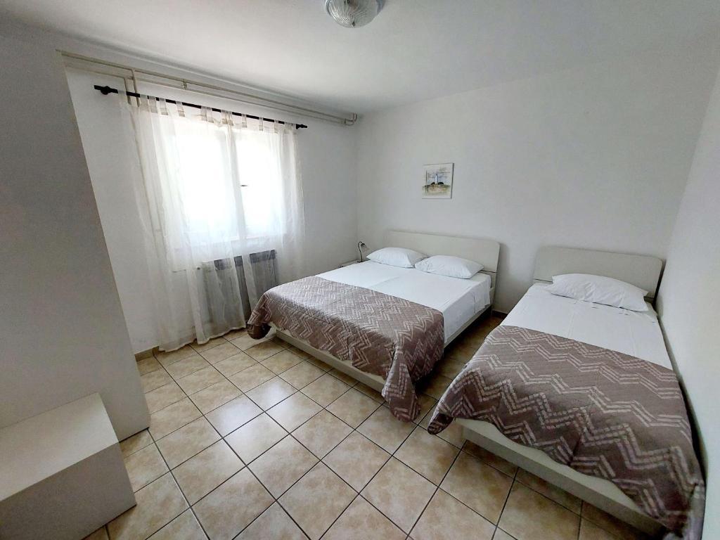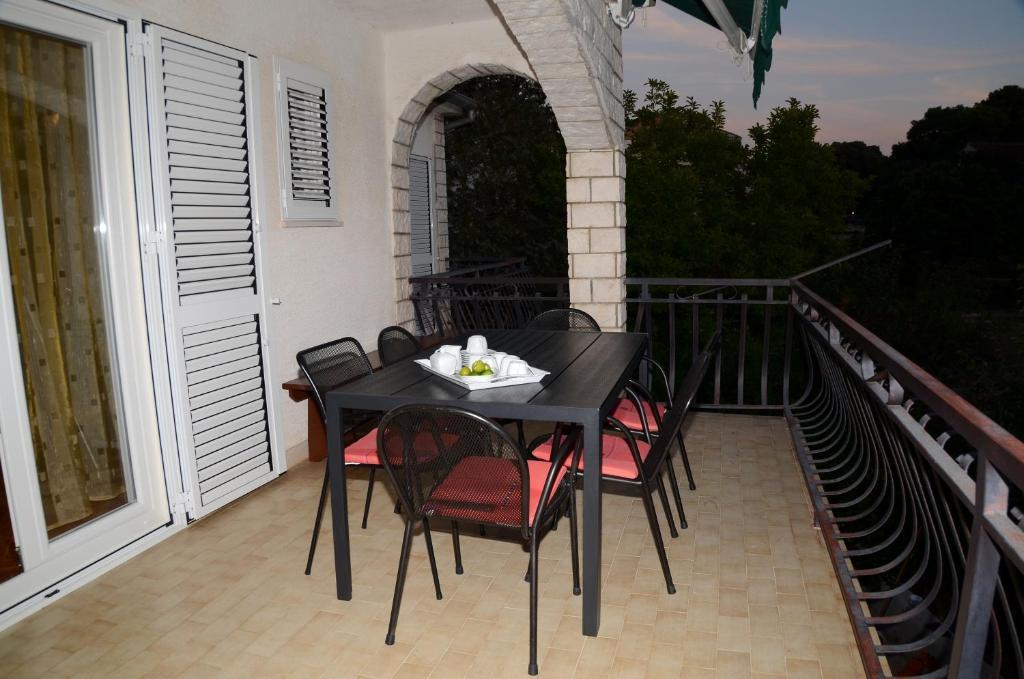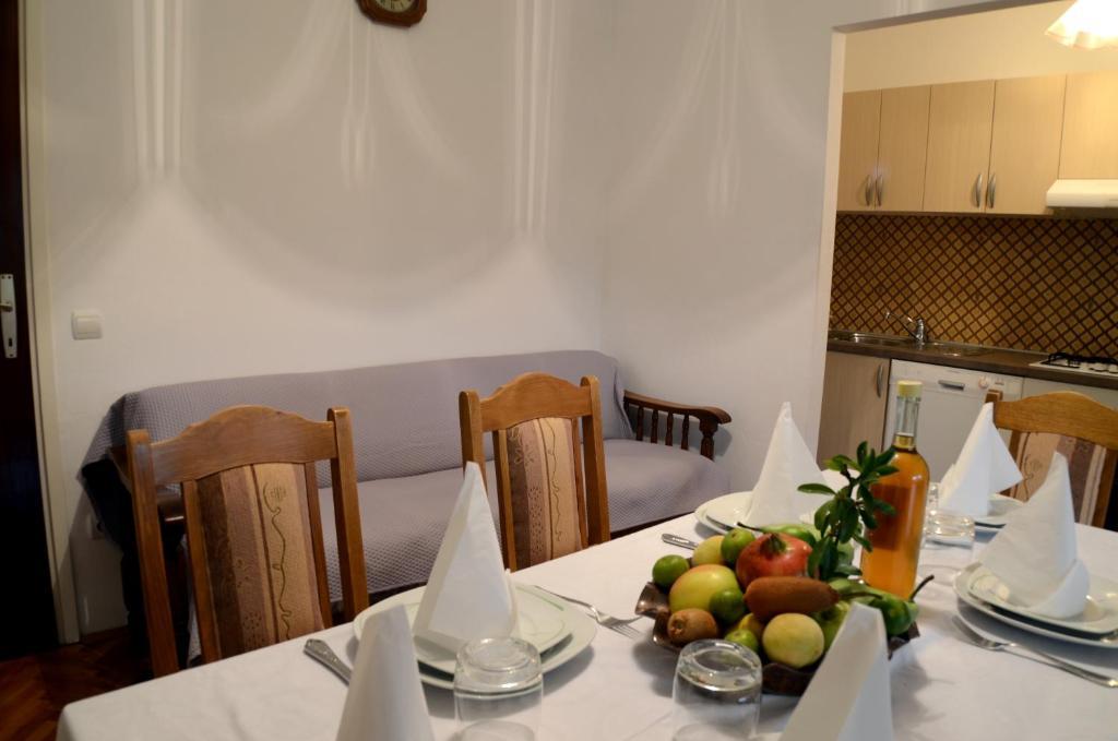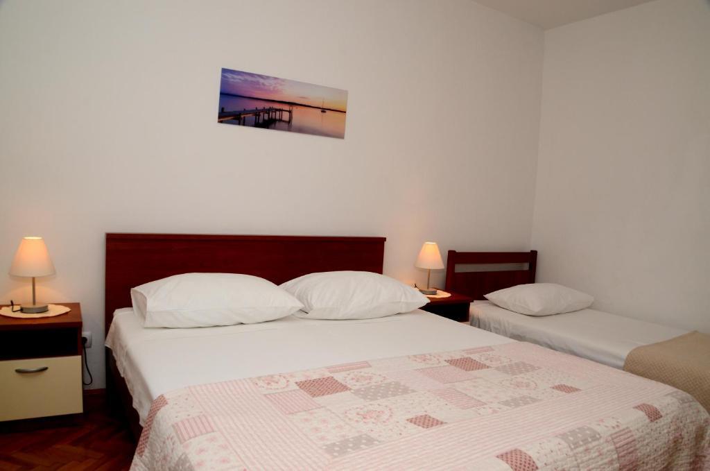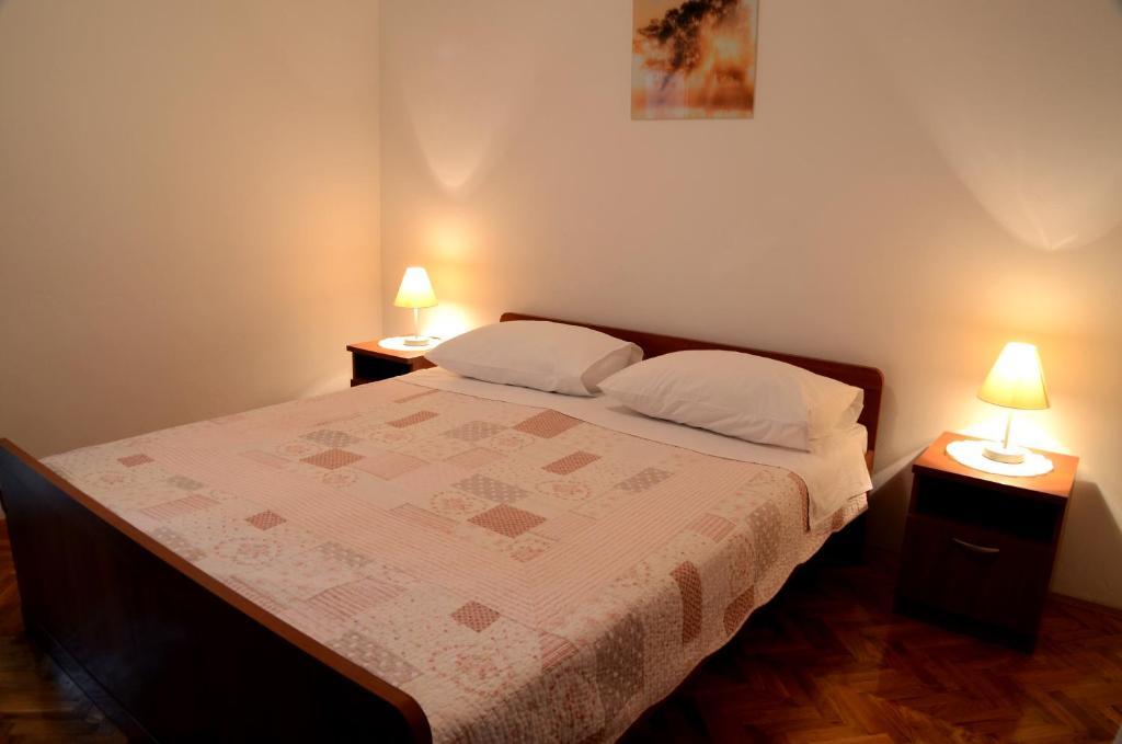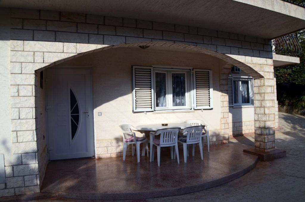 Komforni dvosoban apartman u prizemlju kuće nalazi se u centru grada ali van prometnice. Apartman sa velikom okućnicom odnosno dvorištem, veliki parking. Objekt se nalazi svega 5-7 minuta hoda od mora te par minuta do samog centra grada. Opremljen sa klima, TV SAT, WIFI, roštilj...