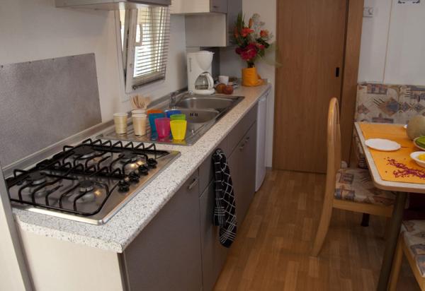 Zadovoljstvo nam je ponuditi Vam smještaj u Mobilnim kućicama za 4+2 osobe u extra zoni sa pogledom na predivni Pašmanski kanal, kućice su opremljene sa kuhinjom, klima uređajem, televizijom, wireless internetom, natkriveom terasom i parkirnim mjestom za automobil.