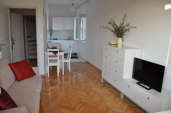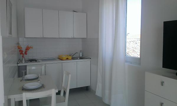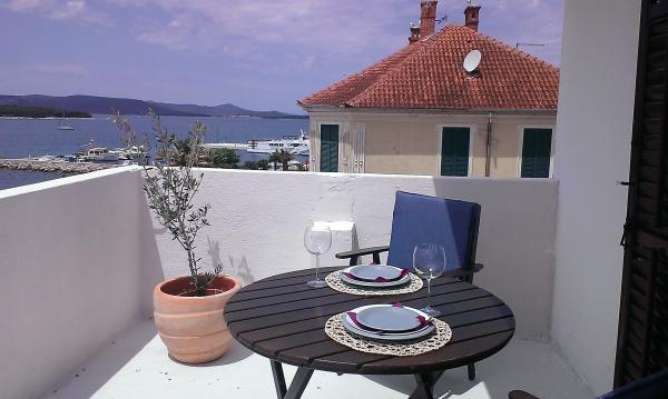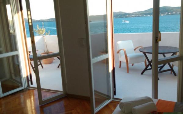 Novouređeni apartman i studio apartman, u kući u samom centru Biograda, na rivi. S terase studija kao i s balkona apartmana pruža se predivan panoramski pogled na sam grad i rivu, a posebno je ugodan pogled na more i otoke u Pašmanskom kanalu. Apartmani imaju klimu i besplatni WI-FI. Ako se želite u potpunosti opustiti i tijekom odmora uživati u pravoj ljetnoj atmosferi malog mediteranskog gradića a što manje vremena provoditi u automobilu, ova je lokacija idealna za vas. Svi potrebni sadržaji su u neposrednoj blizini - plaže, restorani, kafići, trgovine, gradski muzej, trajektna luka, tržnica, marine, bazen, banke, turističke agencije, autobusni kolodvor… Šljunčane plaže su na 5 minuta hoda, a par minuta dalje je glavna pješčana plaža Soline. Na samoj rivi ispred kuće nude se brojne mogućnosti izleta za obližnje nacionalne parkove Kornate, Krku, Paklenicu, kao i za razne druge sportske aktivnosti (biciklističke staze, ronilački izleti i sl. ).