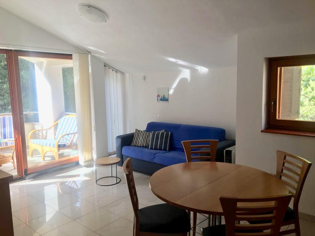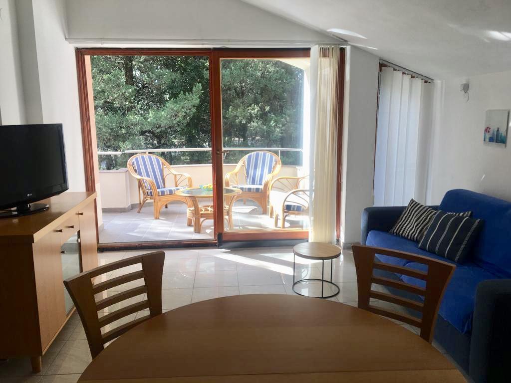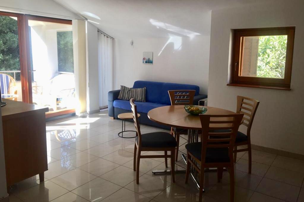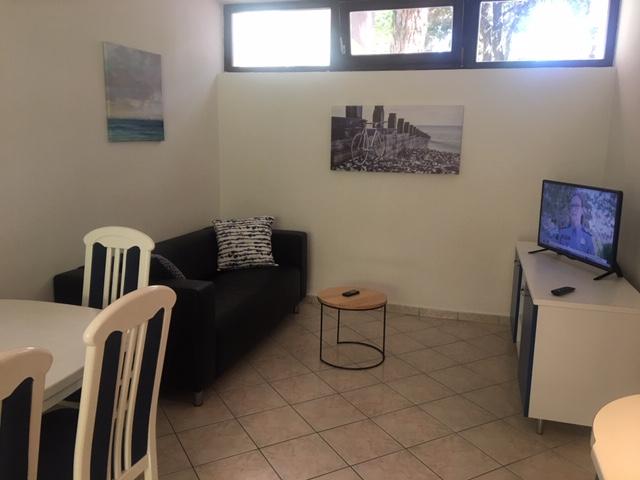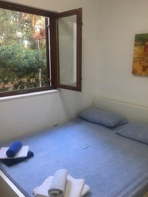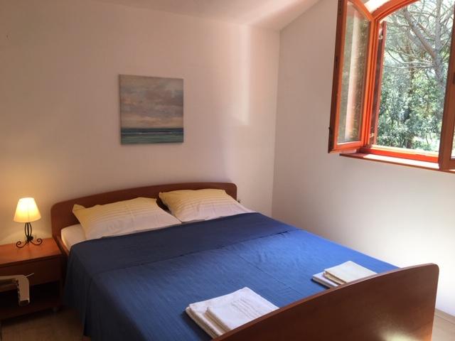 apartman ima dvije spavaće sobe, dnevni boravak, kuhinju s blagavaonom, kupaonicu s tuš kabinom i WC. Ima svoj vlastiti parking, Wi-Fi, klimatiziran je i opremljen između ostalog i perilicom rublja, a raspolaže i velikom terasom te roštiljem (grillom). Iz kuhinje se izlazi na natkriveni dio terase što pruža mogućnost objedovanja vani. Terasa je skrivena od pogleda zelenom ogradom i pruža mogućnost sunčanja. Apartman se nalazi u borovoj šumi cca 250 m od glavne plaže (plaža Soline) u Biogradu, a istovremeno nije daleko niti od centra Biograda (rive). U neposrednoj blizini apartmana (cca 150m od apartmana) nalaze se teniski tereni kao i drugi sadržaji.