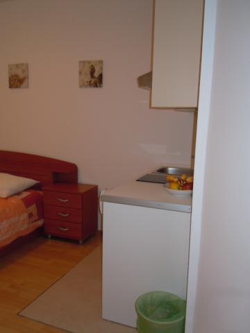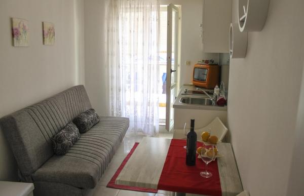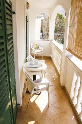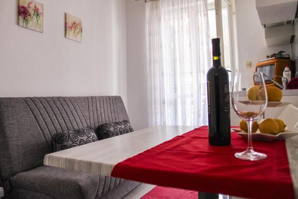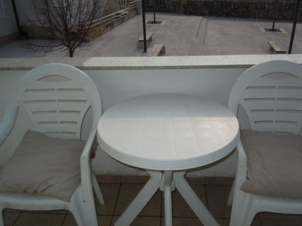 Apartman je smješten u samom centru grada u vrlo mirnom dijelu samo 10m udaljenom od mora. Apartman je kompletno opremljen. Nalazi se svega nekoliko minuta pješice uz more od šljunkovite plaže Dražice. Parking osiguran. Idealan je za troje odraslih ili za bračni par s dvoje djece. U prostranoj sobi nalazi se i kauč na razvlačenje. Ima veliku natkrivenu terasu s koje se vidi more, kuhinju te kupaonu. Ima wi fi i klimu. Najljepši dio apartmana je veliki balkon koji gleda na malen Trg ispred kuće a vidi se i more.