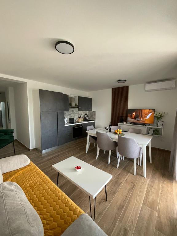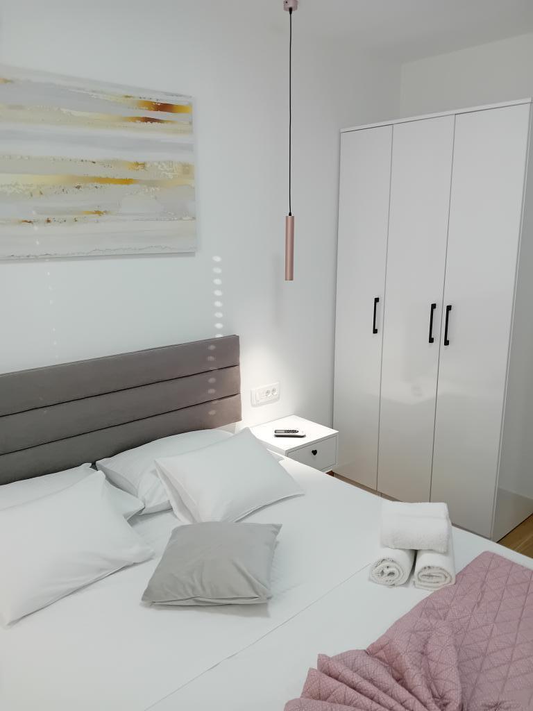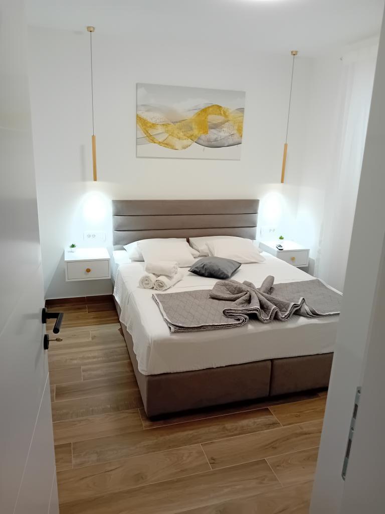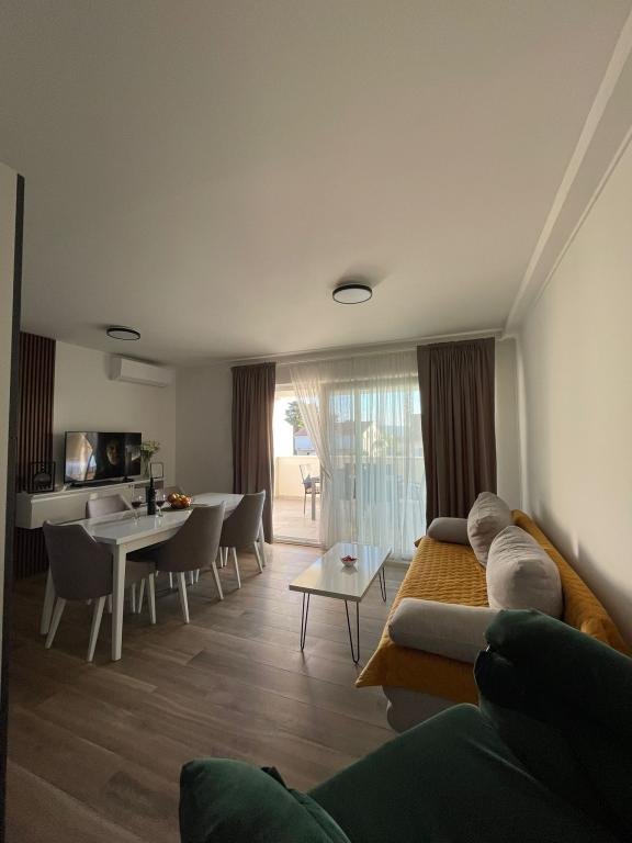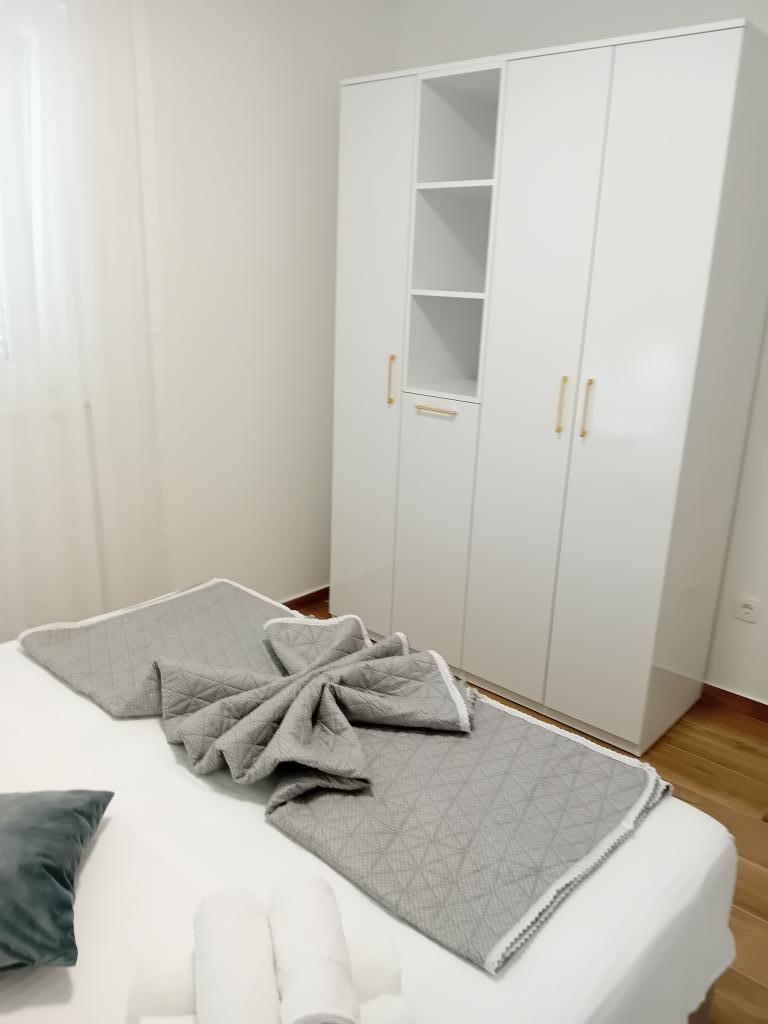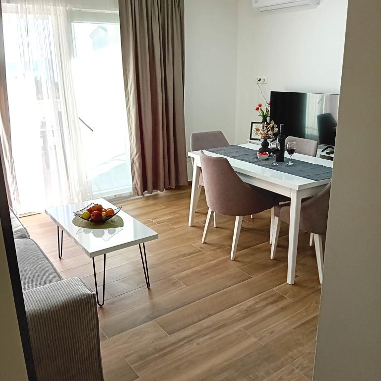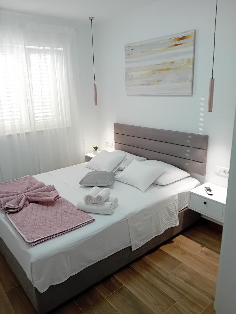 Novoopremljen apartman u mirnom predjelu grada,drugi red od mora.Do plaže ima 100 metara,do centra 10 minuta hoda.Osiguran parking u dvorištu.