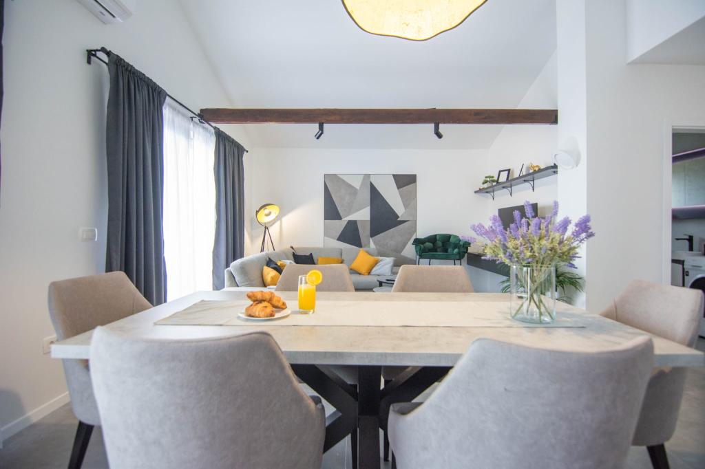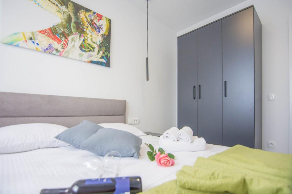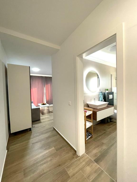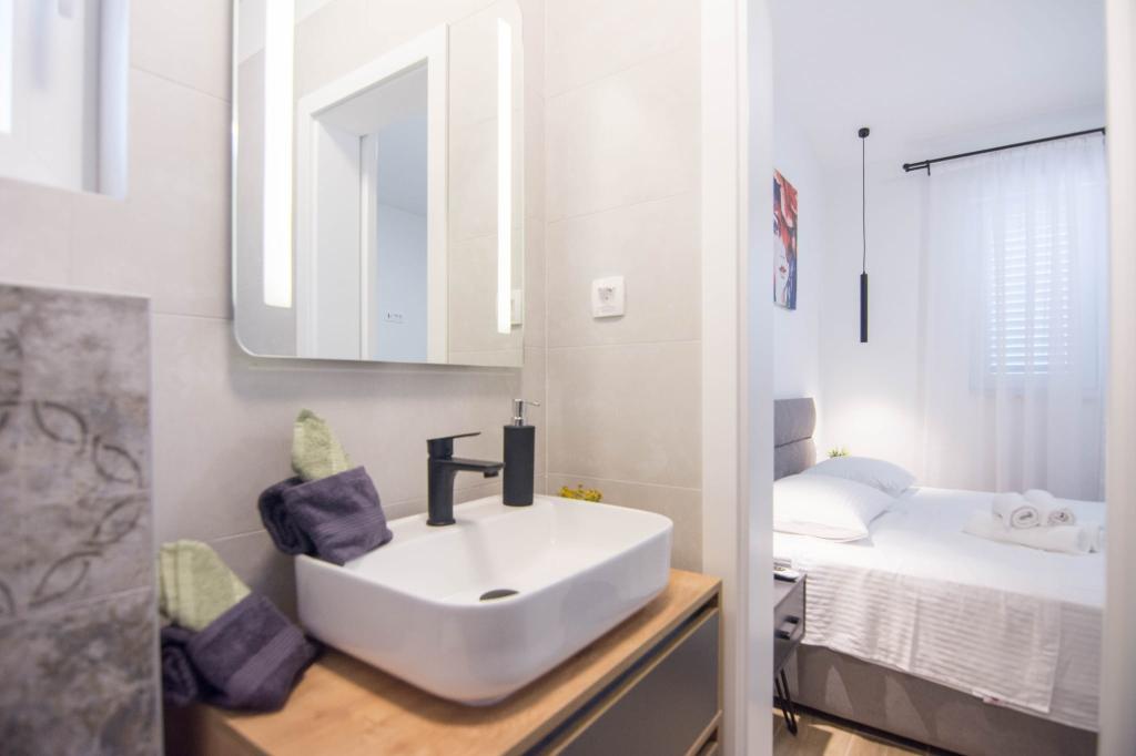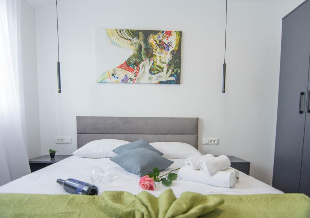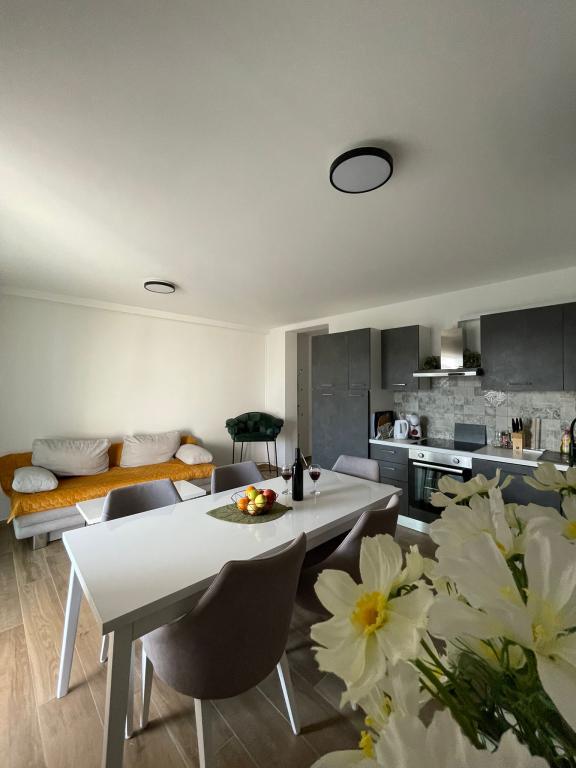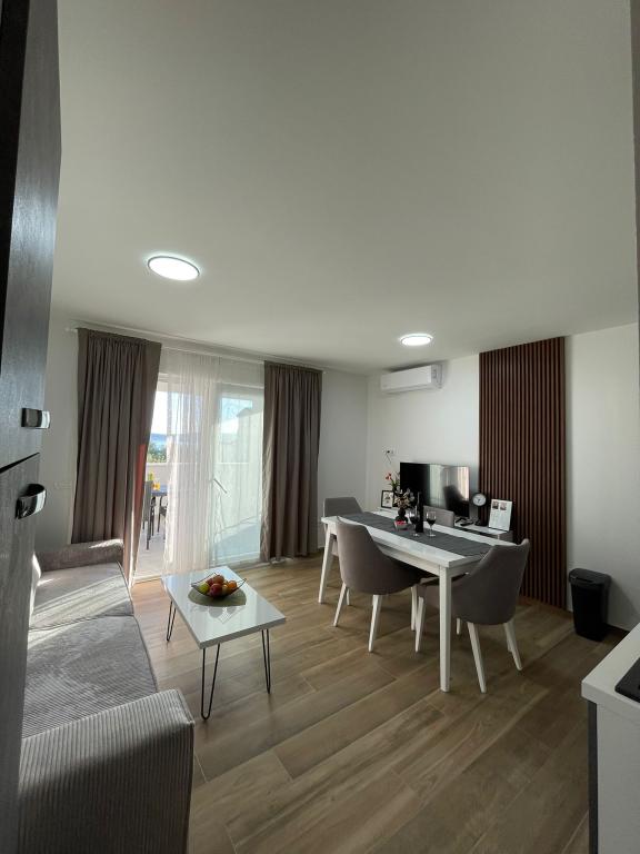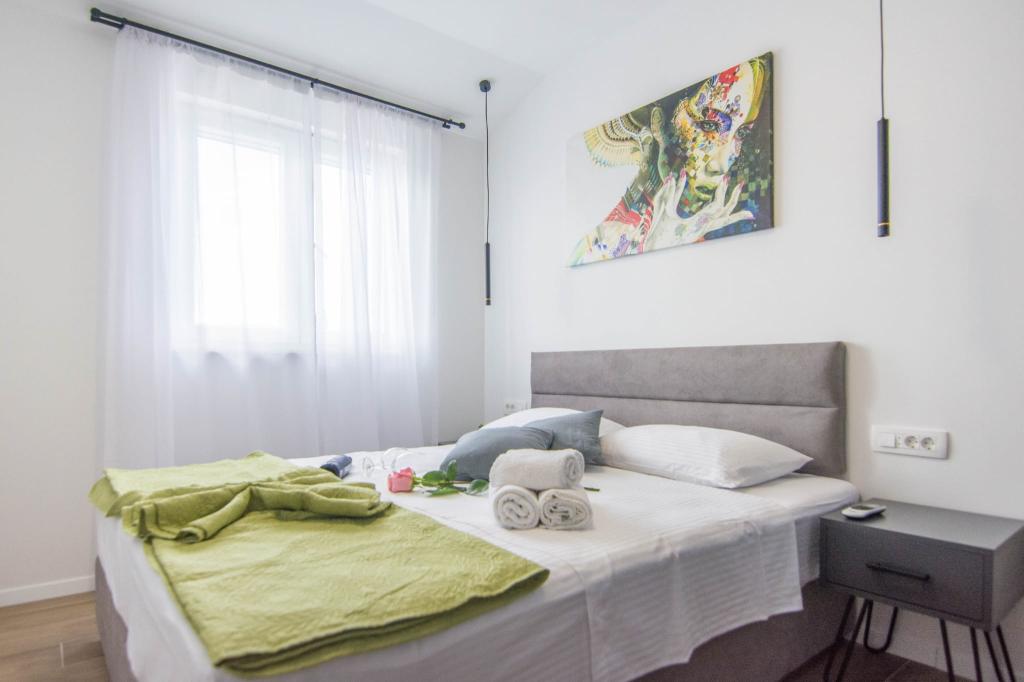Novoopremljen apartman u mirnom predjelu grada,drugi red od mora.Do plaže ima 100 metara,do centra 10 minuta hoda.Osiguran parking u dvorištu.