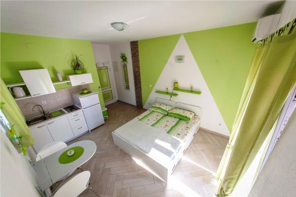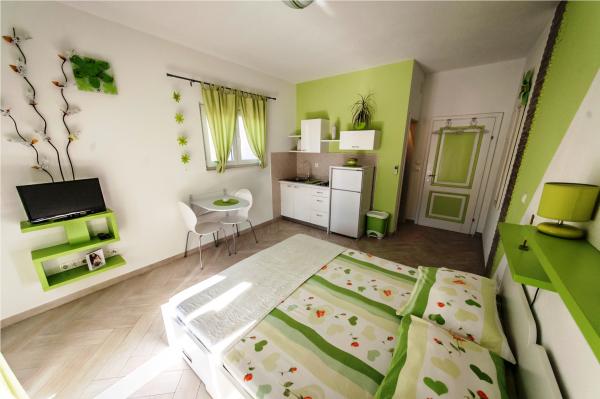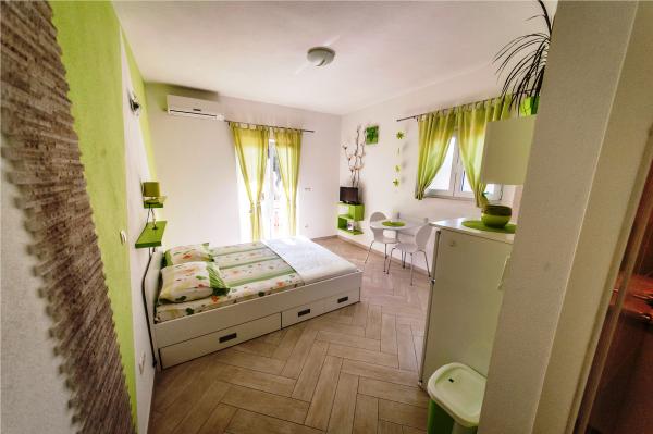 Turistička pristojba je uključena u cijenu.Prekrasan mali studio a opet ima sve što je potrebno, objekt je na odličnoj lokaciji! Sve je bilo besprijekorno čisto i uredno, a domaćini izuzetno ljubazni i uslužni. Objekt je svega nekoliko minuta hoda do plaže a ukoliko imate bicikl možete i istraživati. Idealno mjesto za opuštajući odmor – rado ćemo se vratiti.