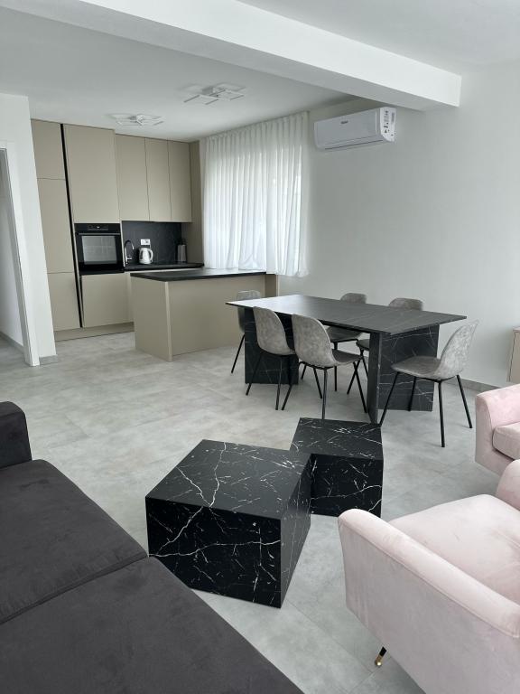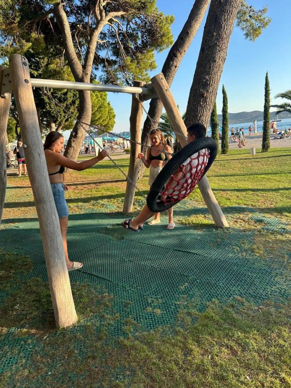 Novi i moderno uređeni apartmani koji se nalaze u neposrednoj blizini plaže Soline, svega 2-3 minute hoda do predivne plaže i šetnice, centra, restorana, kafića. Autobusni kolodovor na udaljenosti od 150 metara od kuće, ljekarna, pekarnice i dućani.