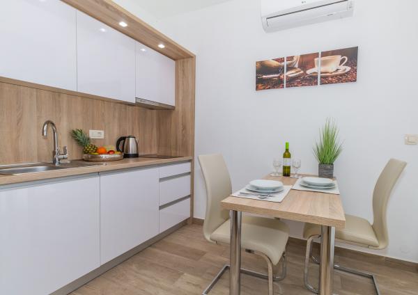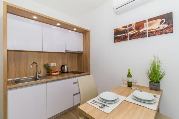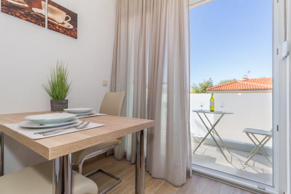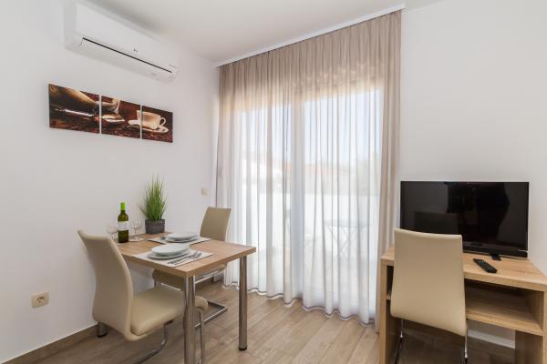 Turistička pristojba je uključena u cijenu.U cijenu noćenja je uključen parking koji osiguravamo za sve naše goste, korištenje klima uređaja te WiFi. Svi naši gosti će na zahtjev dobiti čistu posteljinu i ručnike ukoliko ostaju veći broj dana u objektu. Na našoj recepciji se uvijek možete poslužiti kavicom iz aparata i domaćom rakijom uz dobrovoljnu naknadu. Uz naknadu organiziramo i usluge prijevoza iz/do zračne luke, marine, autobusnog kolodvora...