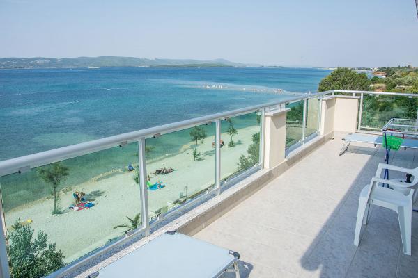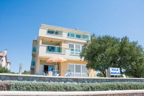 Luksuzna nova obiteljska kuća Villa Marija, u Biogradu na moru, na plaži Bošana, prikladnoj za djecu i neplivače, nudi dva prostrana, moderna i svjetla apartmana: Apartman 1, na prvom katu, s tri spavaće sobe i dva pomoćna ležaja, za do 8 osoba, te Apartman 2, na drugom katu, s dvije spavaće sobe i dva pomoćna ležaja, za do 6 osoba. Svaki apartman raspolaže sa po tri vlastita namještena balkona s direktnim pogledom na more, na veće balkone izlazi iz dnevnih boravaka, a na manje iz jedne od spavaćih soba i iz kuhinja. U svakom je apartmanu Wi-Fi (WLan) internetska veza, klima uređaj (dva u svakom dnevnom boravku i po jedan u svakoj spavaćoj sobi), SAT TV, kuhinja - s posuđem i priborom za jelo, štednjakom s pećnicom, hladnjakom s odjeljkom za zamrzavanje, aparatom za filter kavu i perilicom suđa, te dvije kupaonices tuš kabinama. Oba apartmana opremljena su i perilicama rublja, a apartman na prizemlju i sušilicom.