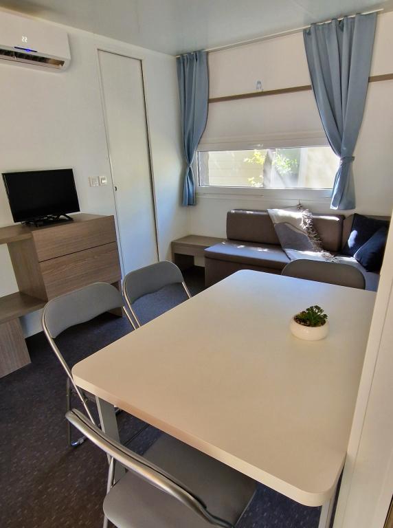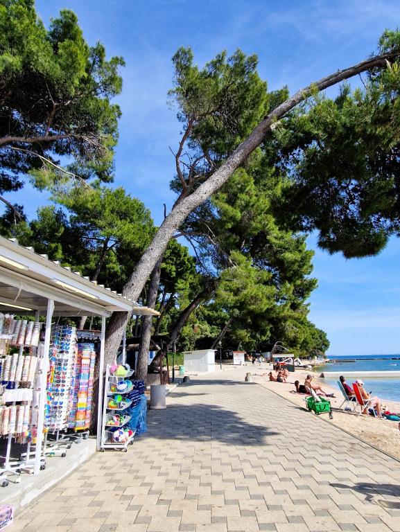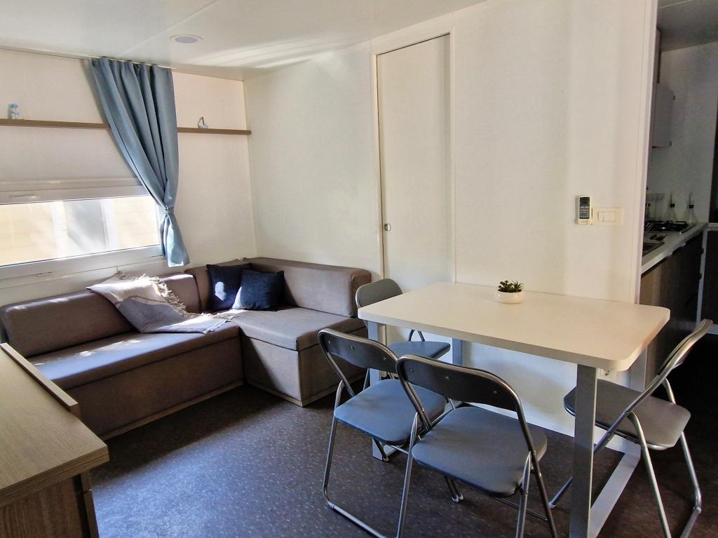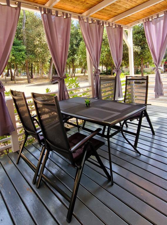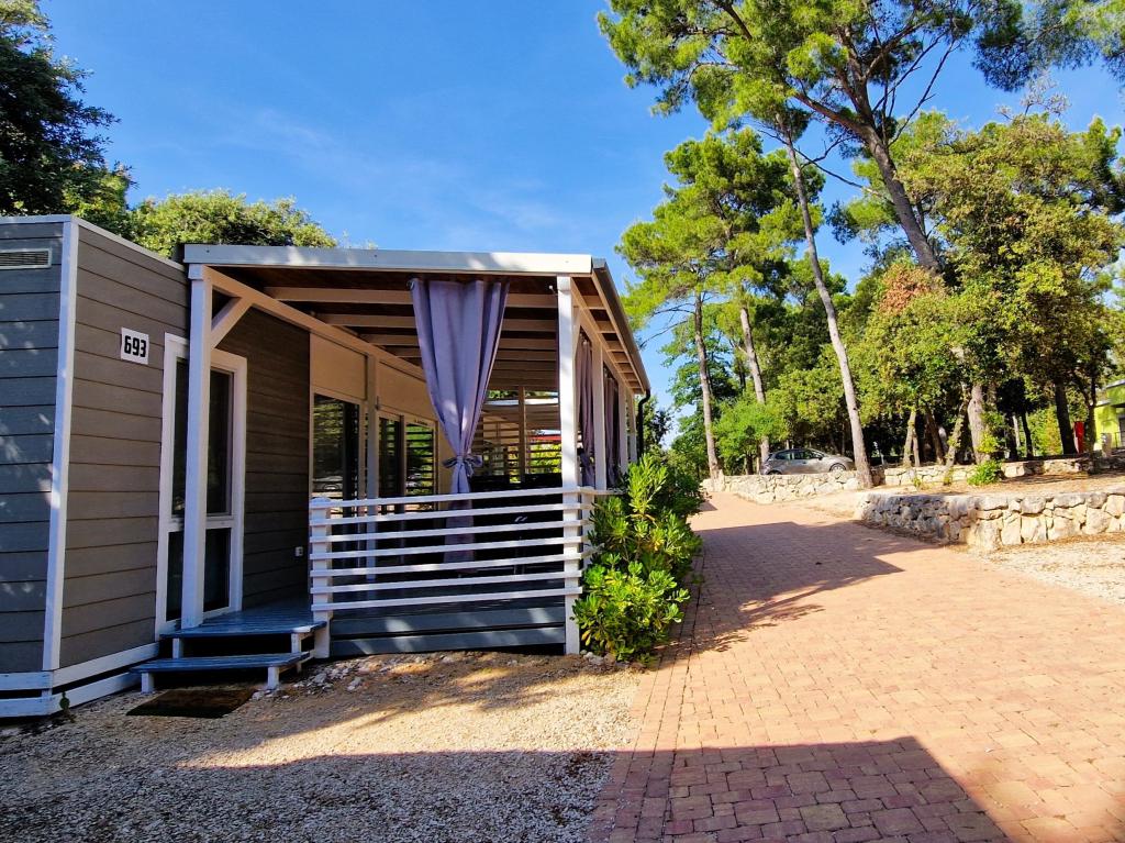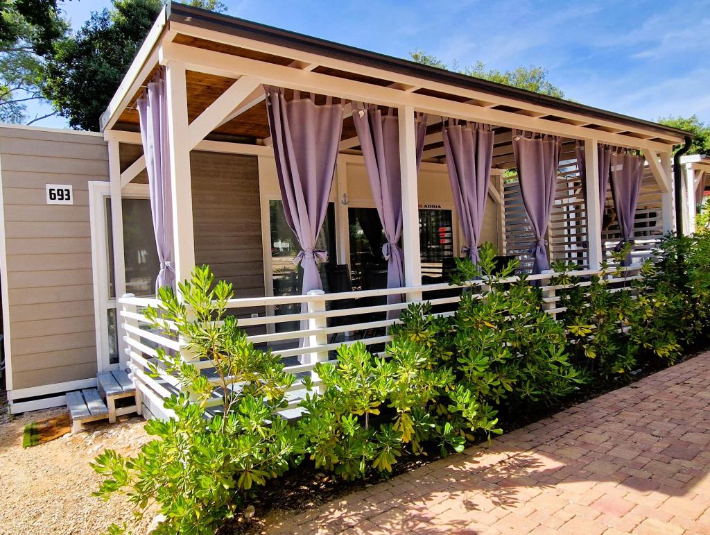 Dobro došli u kamp kućicu ARIA, smještenu u predivnom Kampu Park Soline, u hladu guste borove šume tik uz jednu od najljepših obala Jadranskog mora. Lokacija nudi idealan spoj prirodnog mira i blizine svih sadržaja - do centra Biograda može se laganom šetnjom uređenom obalnom šetnicom stići za svega 15 minuta. Duž cijele obale kampa prostiru se šljunčane i pješčane plaže, kao i brojni kafići, restorani, trgovine i drugi turistički sadržaj. Kamp kućica ARIA nalazi se na broju 693, i u potpunosti je opremljena za bezbrižan i ugodan obiteljski boravak. Sadrži dvije odvojene spavaće sobe, dnevni boravak sa ležajem koji se može razvući, kuhinjom s blagovaonicom, te prostranom terasom koja je sigurna za djecu. Klima uređaj, TV, privatno parking mjesto, perilica za rublje. Smještaj je posebno pogodan za obitelj s djecom - terasa je ograđena, a okruženje je mirno i prirodno. U sklopu kampa nalazi se i zabavni park, dječje igralište, Kids Club, te razne dnevne i večernje animacije.