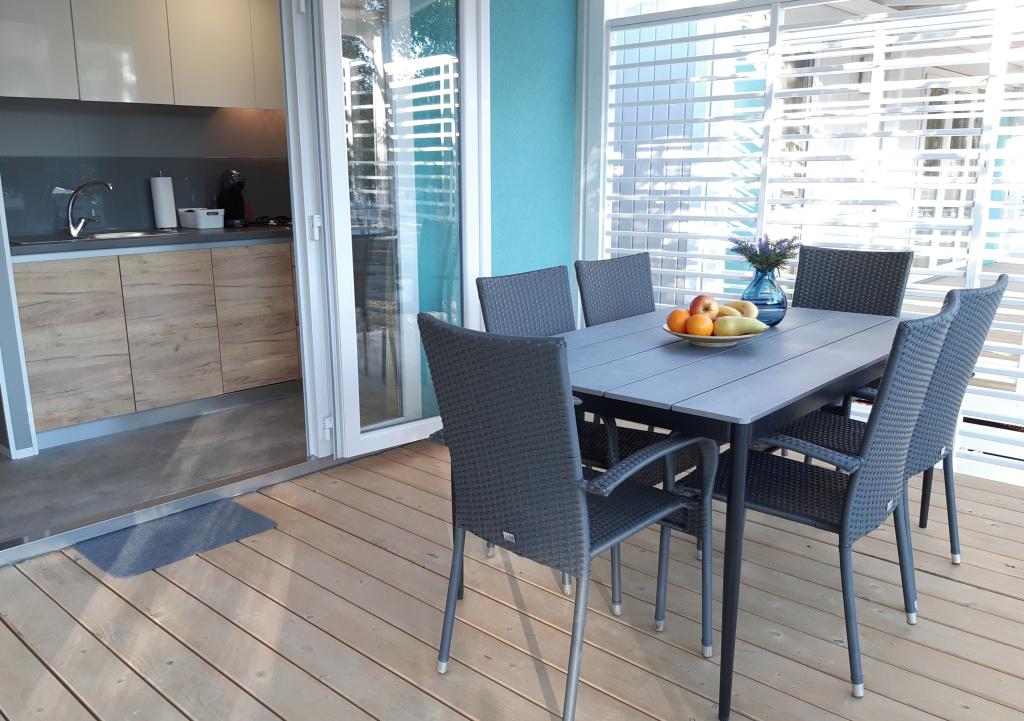 Moderna mobilna kućica InnMare 781 u mirnom dijelu kampa Soline smještena u borovoj šumi savršeno je mjesto za obiteljski odmor. Površine 32 m2 sastoji se od spavaće sobe za bračnim krevetom, spavaće sobe sa dva jednostruka kreveta, dnevnog boravka sa krevetom na razvlačenje (1-2 osobe), kupaonice sa toaletom, terasom površine 32 m2, malim dvorištem te parkirnim mjestom. Objekt je potpuno namješten, kuhinja uz standardnu opremu sadrži i mikrovalnu pećnicu, kuhalo za vodu, te espresso aparat. Terasa je opremljena dodatnim stolom za jelo, ležaljkama za savršeno drijemanje začinjeno mirisom borova, te je pokraj objekta pult za električni roštilj koji je također sastavni dio opreme koju gosti mogu koristiti. Pokraj objekta se nalazi i parkirno mjesto za jedno vozilo koje gosti mogu koristiti. Dobrodošli u InnMare 781, moderni objekt namjenjen za miran i idiličan obiteljski odmor u mirnoj borovoj šumi, a nadomak mora, plaža i Biograda na moru!