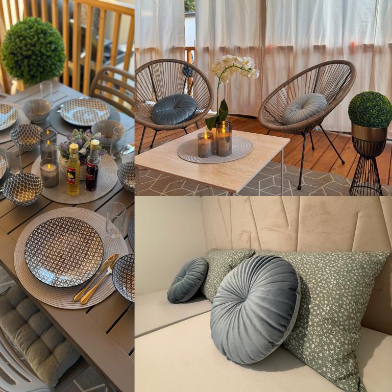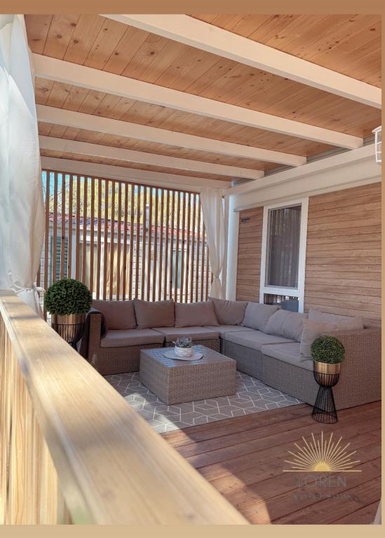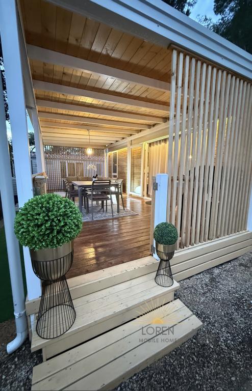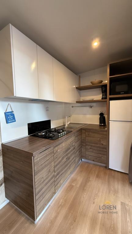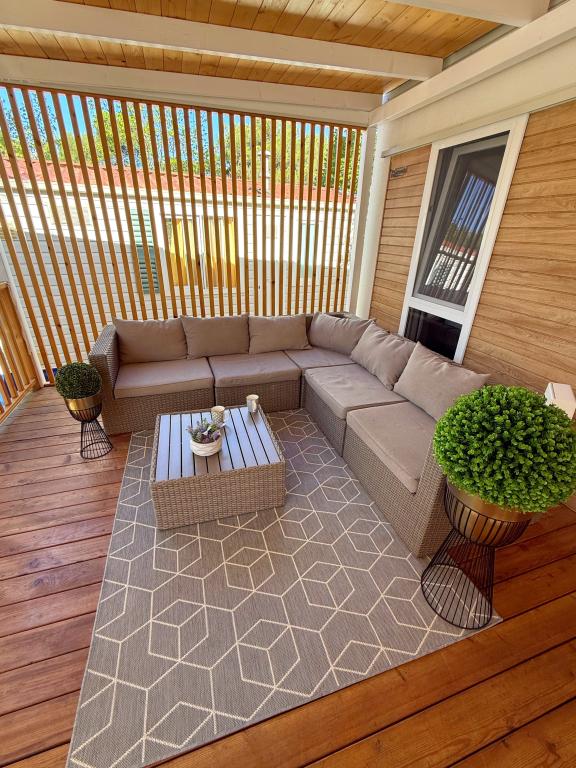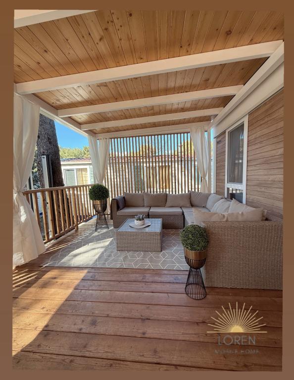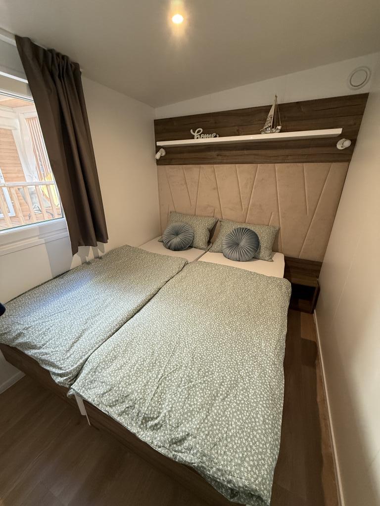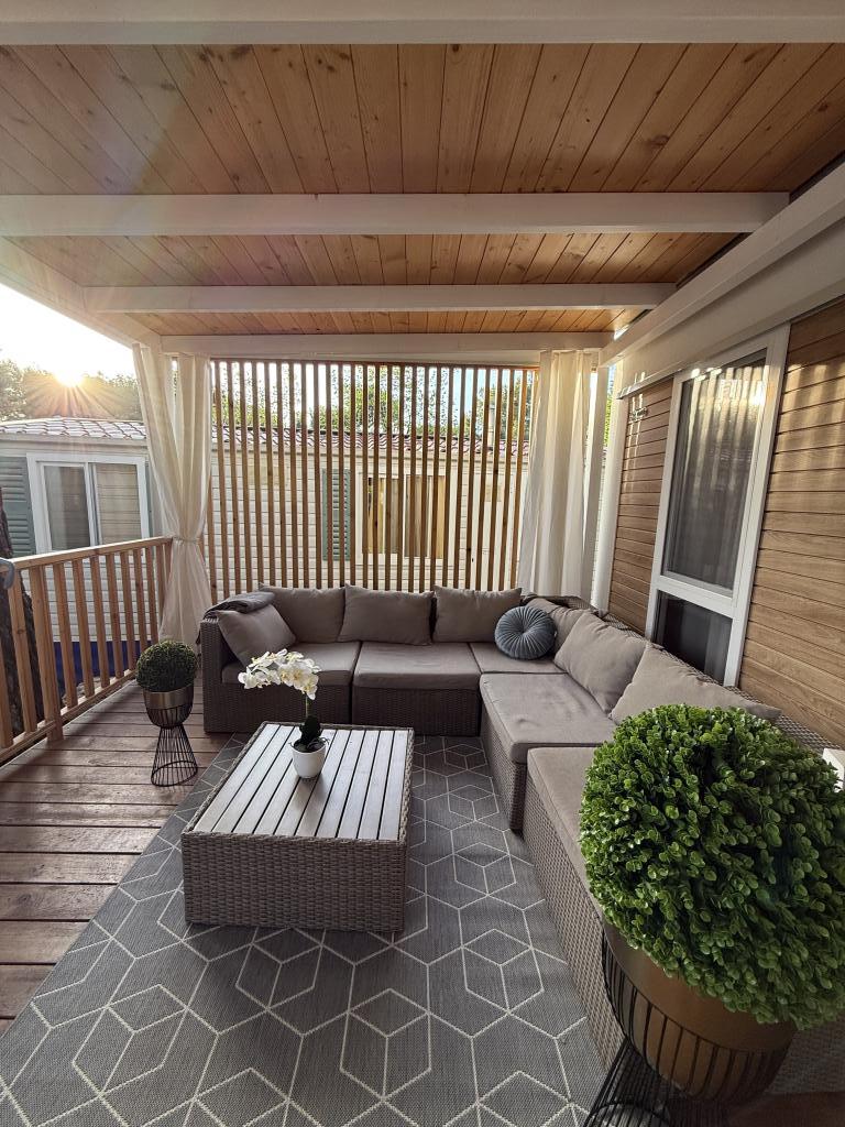 Predivna mobilna kućica za 6 osoba, nalazi se u na 2 minute od prekrasnih šljunćanih plaža i svih sadržaja, okružena gustom borovom šumom što garantira ugodan boravak u prirodnoj hladovini. Opremljena je sa dvije spavaće sobe te dodatnim bračnim ležajem u dn.boravku popraćeno sa dvije kupaone te potpuno opremljenom kuhinjom-perilica posuđa,aparat za kavu, toster, kuhalo za vodu, mikrovalna..Prostrana terasa sa lounge zonom i velikim stolom opremljena je i roštiljem, vanjskim tušem , a na raspolaganju su sup i el.romobili. Pekara, dućan, kafići i restorani odmah su pored kućice. Ljubimci su dobrodošli, a za djecu smo pripremili baby set- hranilica i kinderbet. Parking pored kućice se ne naplaćuje.