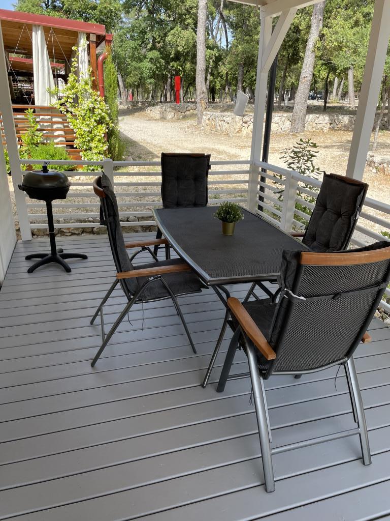 Kućica sadrži: 2 spavaće sobe, Kuhinja (kompletan invertar), Blagovaonica , jedna Kupaonica , Natkrivena komplet opremljena terasa 32m2, Krevetić za bebe, Hranilica za bebe, Sušilo za kosu, Aparat za kavu, Kuhalo za vodu, Roštilj, Toster, Mikrovalna pećnica, Glačalo, Ručnici, Posteljina,Kuhalo za jaja, Standmixer, Usisivac