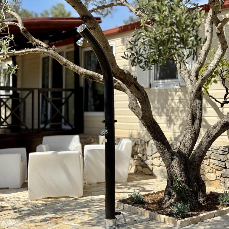 Mobilna kuća se nalazi u sklopu kamp Bakija , 40m udaljena od mora, sa jednostavnim pristupom na plažu.Nedaleko od plaže Soline, udaljena 2-3 min pješice,1 minut hoda do marketa Studenac, te do centra 7-8 min pješice.Potpuno opremljena sa okućnicom,kuhinjom, udobnim dnevnim boravkom. Vlastiti vanjski grill u sklopu kućice te vlastiti vanjski tuš. Objekt je za 4 osobe, 2 sobe, 2 kupaonice, od kojih je jedna kupaonica sa masažnom kadom. Prostrana terasa, savršena za ugodan boravak s pogledom na more, te pogled na prekrasne zalaske sunca.